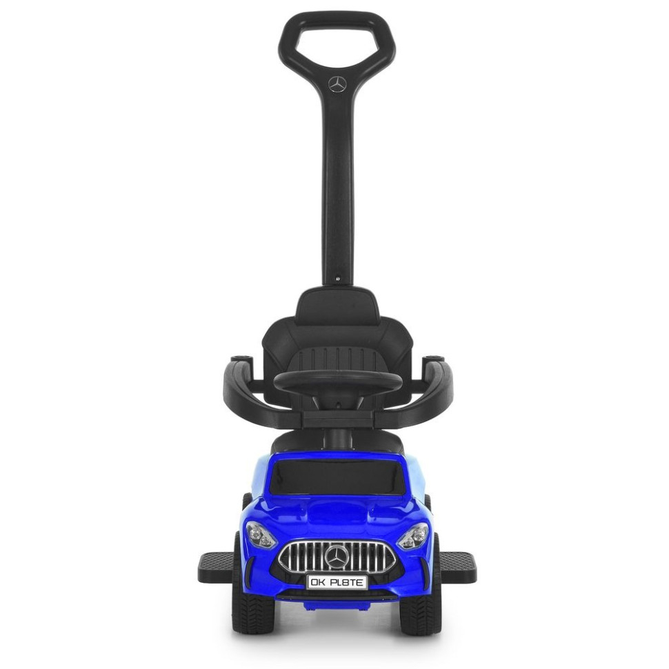 Каталка-толокар M 6255 EL оснащена м'яким сидінням з страхувальним бампером, що особливо важливо для найменших водіїв. Знімна батьківська ручка дозволяє дорослим керувати напрямком руху, допомагаючи дитині, поки та тільки вчиться їздити самостійно. Музичні ефекти і яскраве підсвічування роблять прогулянки веселішими і цікавішими, створюючи у малюка відчуття справжньої пригоди за кермом.