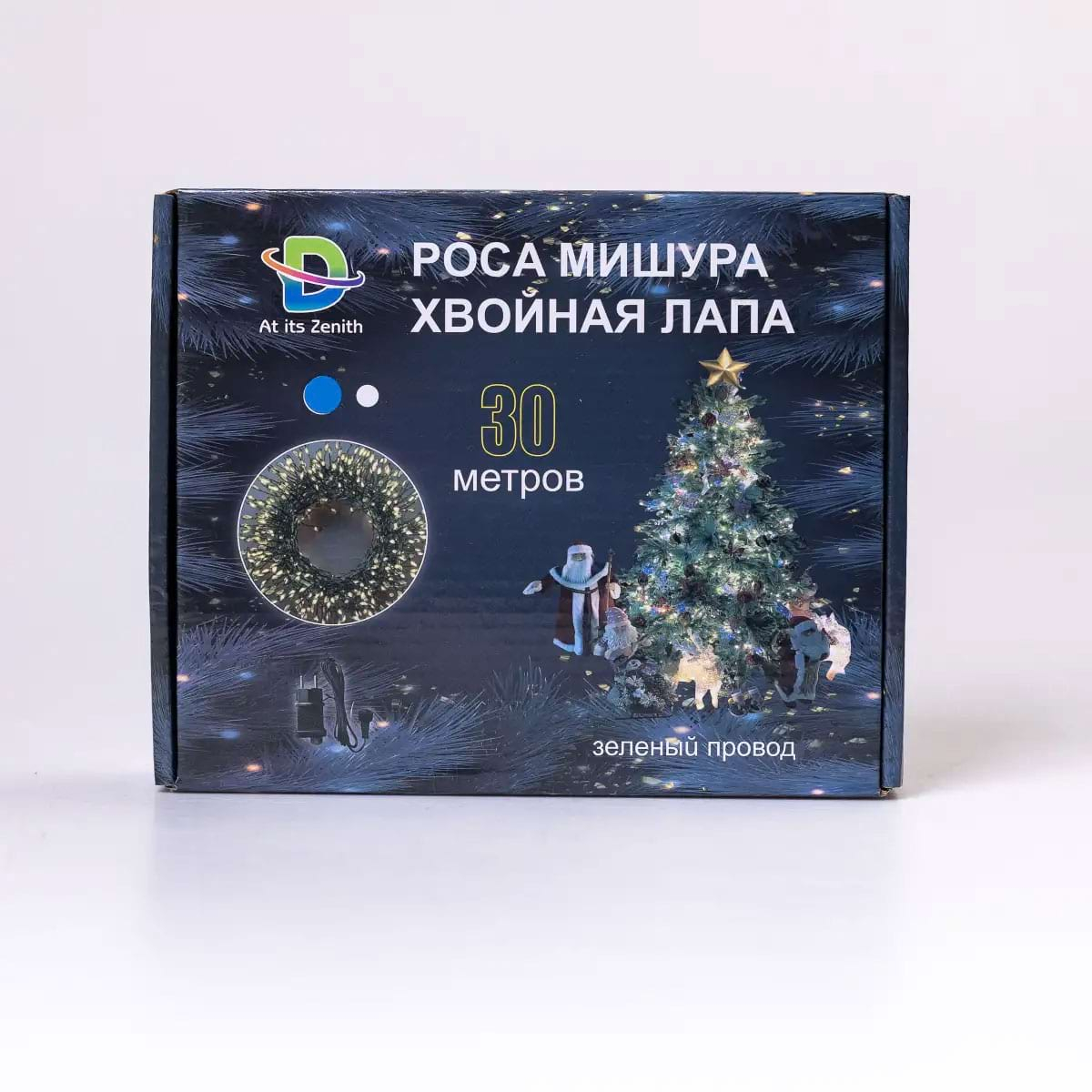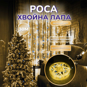 Гірлянда роса мішура 30 метрів хвойна лапа 640 led світлодіодів зелений дріт жовто-блакитна D1750Y