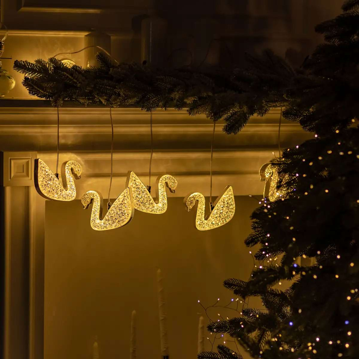 Гірлянда штора з фігурками Сваровскі створює затишну атмосферу, роблячи будь-який захід унікальним. Світлодіодна гірлянда ідеально підходить для вікон, дверей, стін та фотозон. Гірлянда створить казковий ефект, роблячи вашу подію по-справжньому особливою. Основні характеристики фігурної гірлянди довжина 3 метри; 6 фігурок; колір – жовтий. Особливості гірлянди Гірлянда має просту та зручну конструкцію, яка дозволяє легко встановити її у будь-якому місці. Вишукана форма робить її ідеальним вибором для прикраси вікон, стін, арок або балконів. Гірлянда включає 6 великих фігурок. Використовуючи сучасні LED-технології, гірлянда ефективно витрачає енергію, забезпечуючи яскраве світло та тривалий термін служби. Проста установка гірлянди роблять її ідеальним вибором для створення особливої атмосфери. Насолоджуйтесь чарами світла разом з цією унікальною гірляндою. Купити гірлянду можна з доставкою по всій Україні. Гірлянда підлягає поверненню лише тоді, коли її справність перевірено поштою. У всіх інших випадках цей товар не підлягає поверненню.