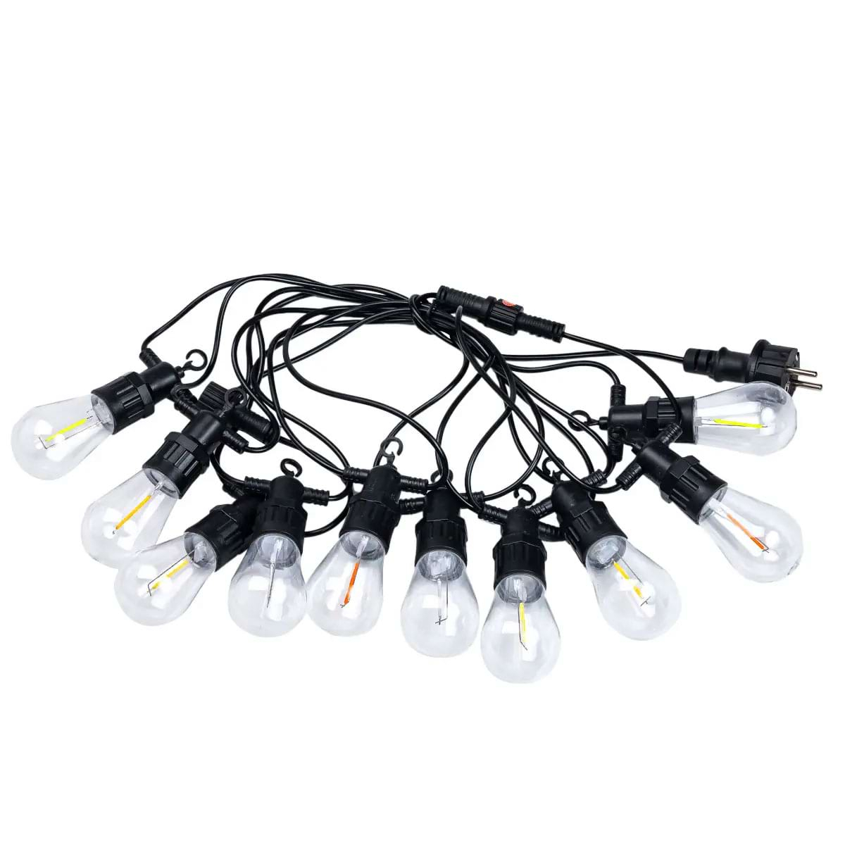 Вулична гірлянда у ретро-стилі створює теплу та затишну атмосферу у вашому саду чи будинку. Її класичний дизайн робить гірлянду ідеальною для прикраси альтанок, веранд, дерев, чагарників, а також для екстер'єру кафе та ресторанів. Гірлянда також підходить для використання в приміщеннях як стильний елемент інтер'єру або додаткове освітлення, завдяки чому ви зможете легко перетворити будь-який простір на затишне місце для святкувань або відпочинку. Характеристики: Кількість лампочок: 10 Довжина: 5 м Напруга: 220 В Кут світіння: 300° Колір світла: мультиколор Цоколь: E27 Переваги: Підходить для використання як усередині, так і зовні. Класичний дизайн доповнить будь-який інтер'єр та екстер'єр. Створює святкову атмосферу, підкреслюючи особливі моменти. Заходи безпеки: Уникайте використання гірлянди в умовах надмірної вологості. Не перегрівайте лампочки, щоб запобігти можливому займання. Перед підключенням перевірте електричні з'єднання на наявність пошкоджень.