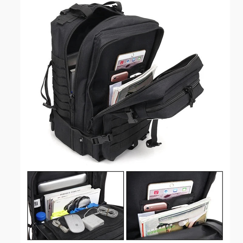 Тактичний рюкзак KILLA на 45 літрів із системою кріплення Molle. Складається з 2 великих відділень та 2 додаткових відсіків на передній панелі. Плечові ремені із щільним наповнювачем, посилені додатковими стропами та регулюванням по довжині. Поверхня кишень та бічні поверхні рюкзака оснащені системою кріплення Molle. Бічні компресійні ремені для затягування рюкзака із карабін фасткекс.