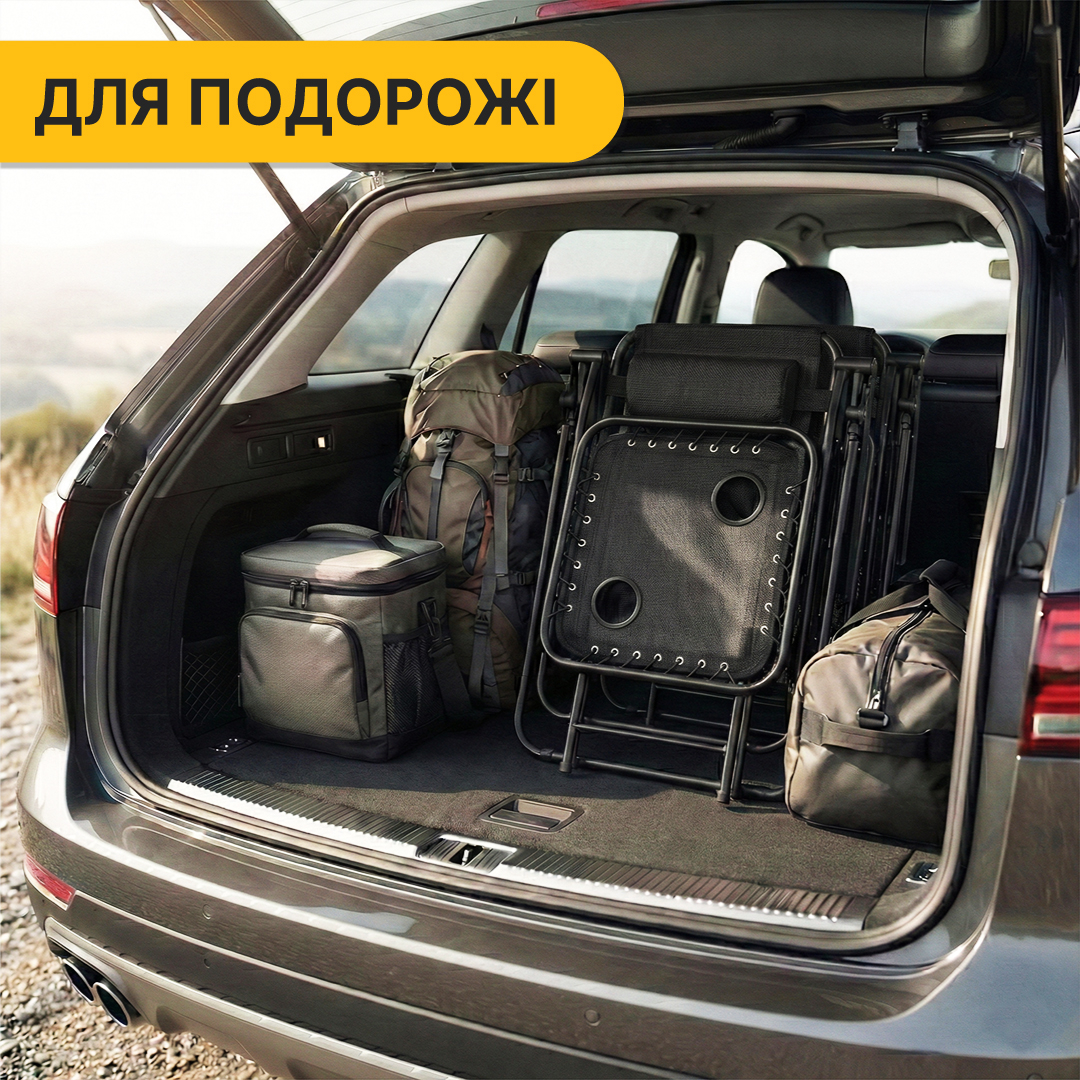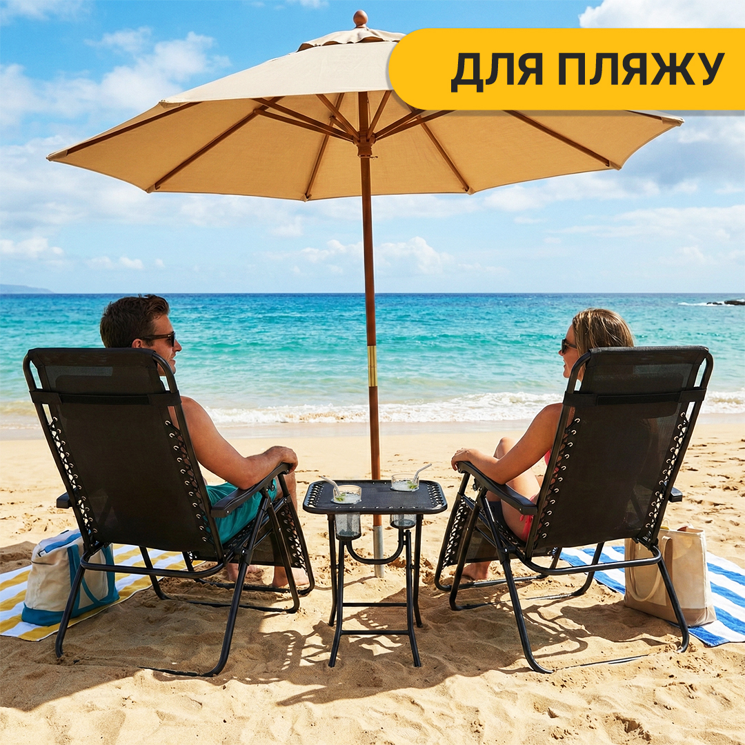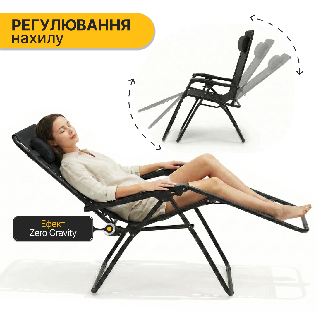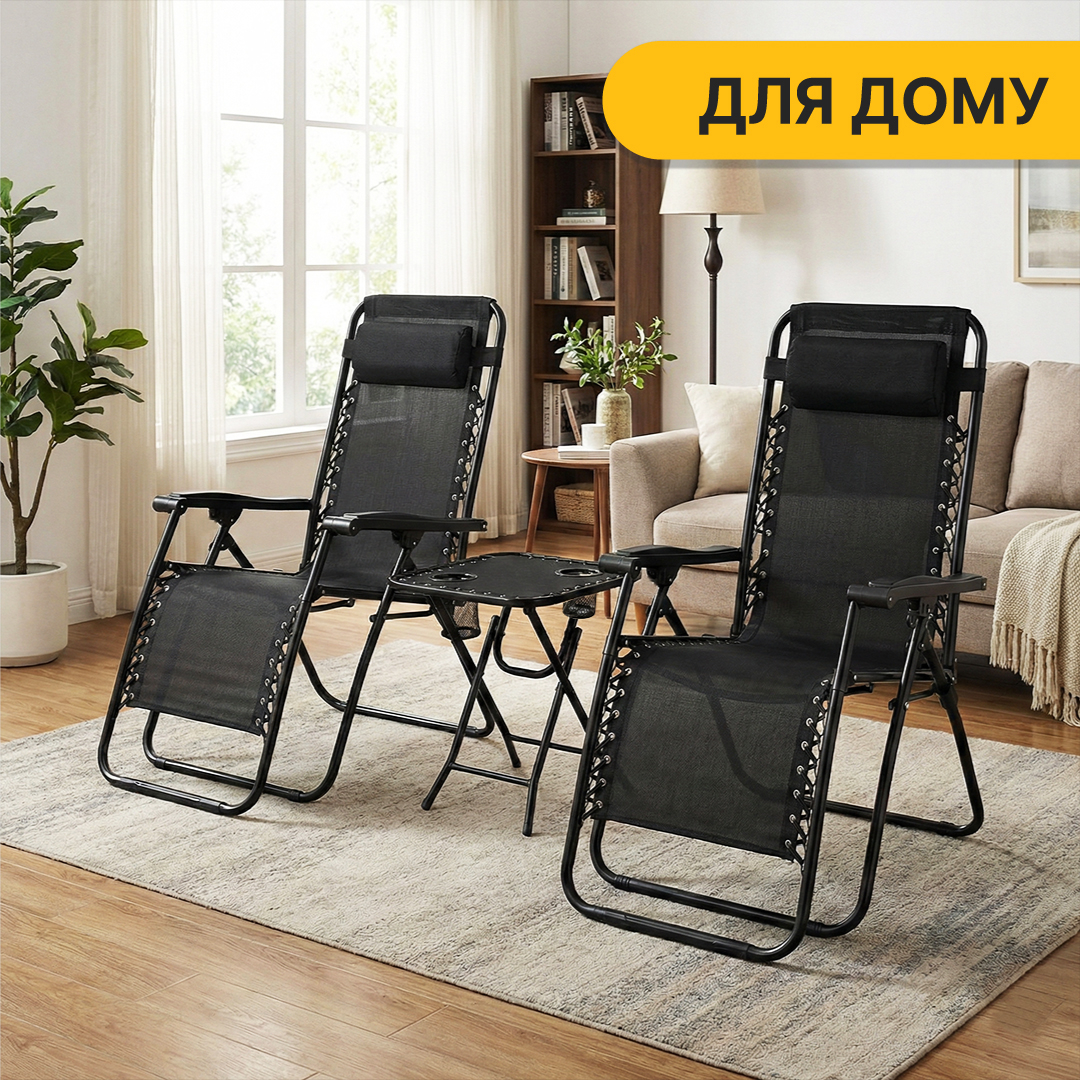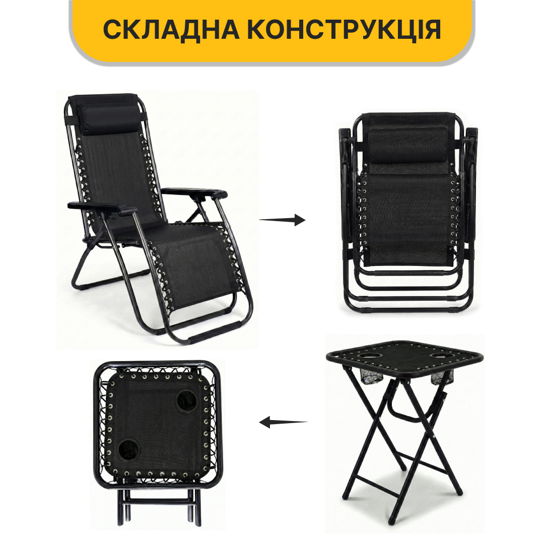 Комплект 2-а розкладні крісла-шезлонга + столик Zero Gravity LEOBRO Чорний (LB-ZGT-F3-BLK)
