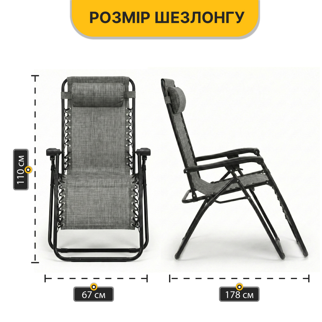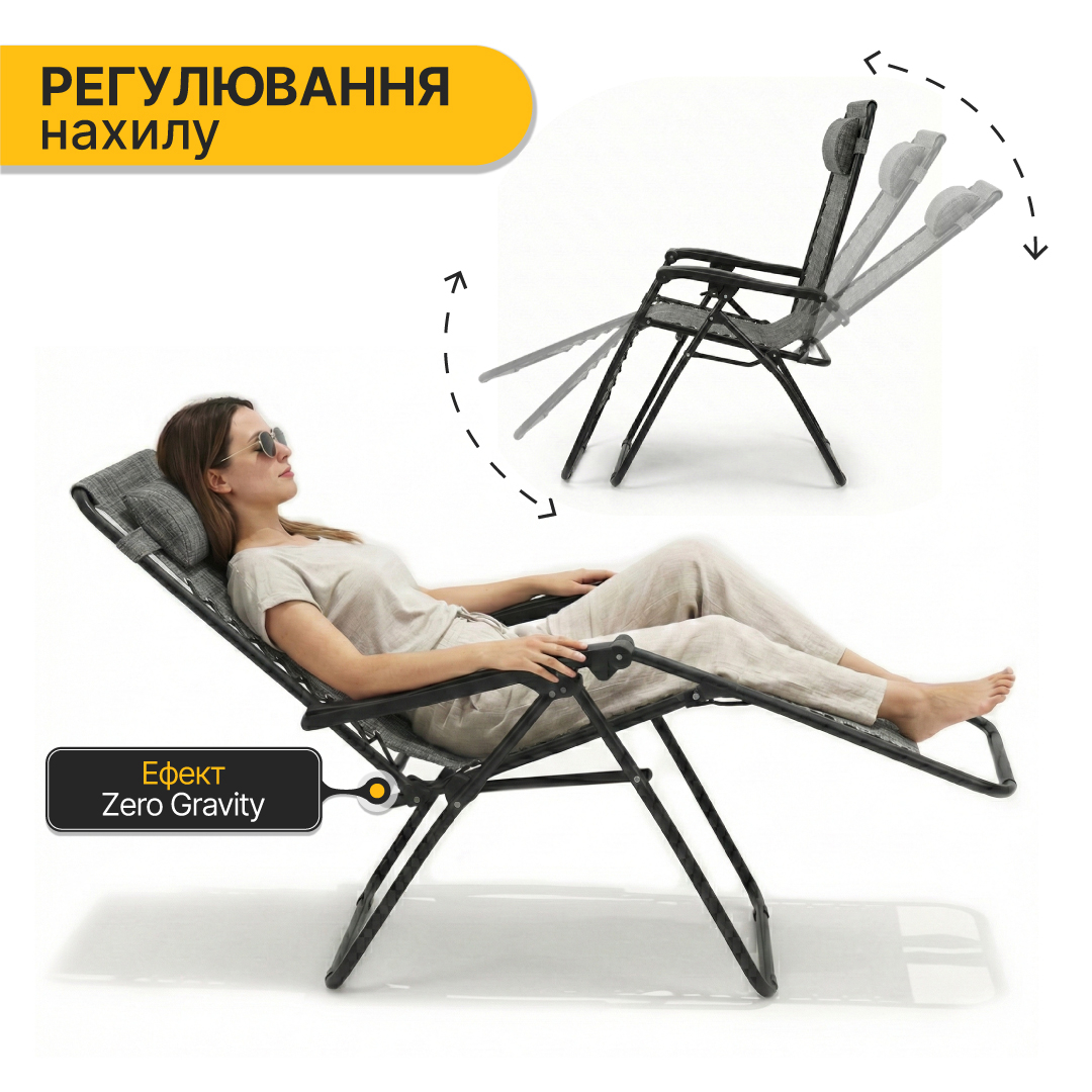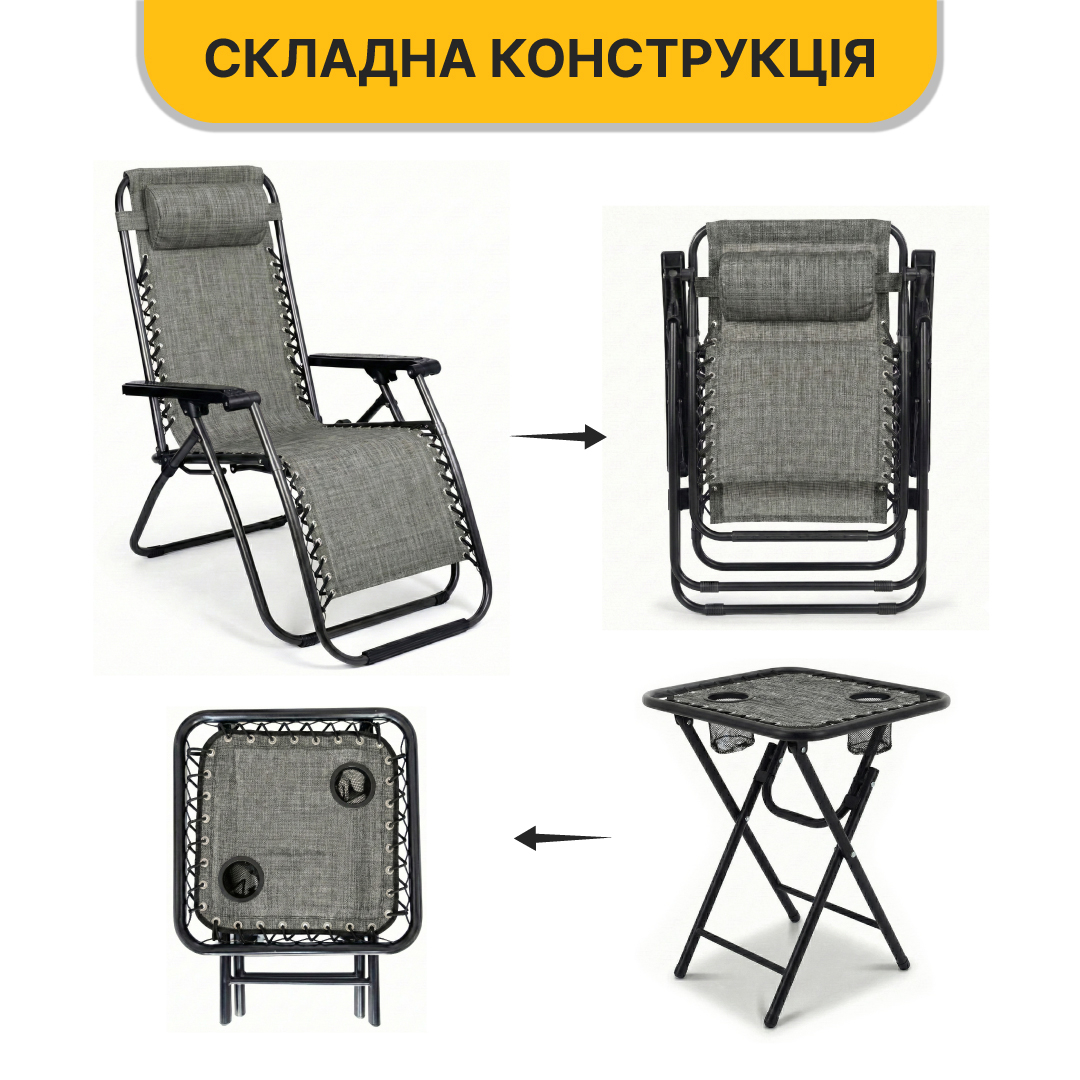 Комплект 2-а розкладні крісла-шезлонга + столик Zero Gravity LEOBRO Сірий (LB-ZGT-F3-GRY)