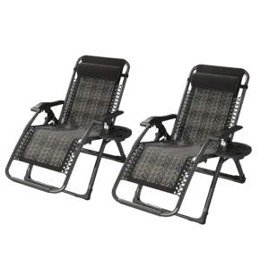 Комплект из 2 шезлонгов Zero Gravity LEOBRO Серое плетеное Ротанг (ZGC-S10Х2)