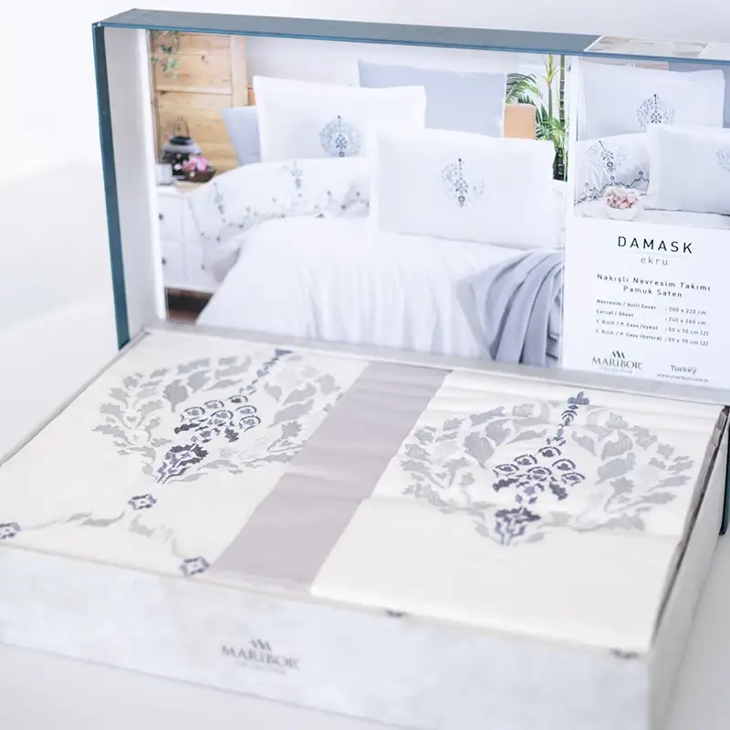 Комплект постільної білизни "MARIBOR SATIN" Damask ekru grey, євро