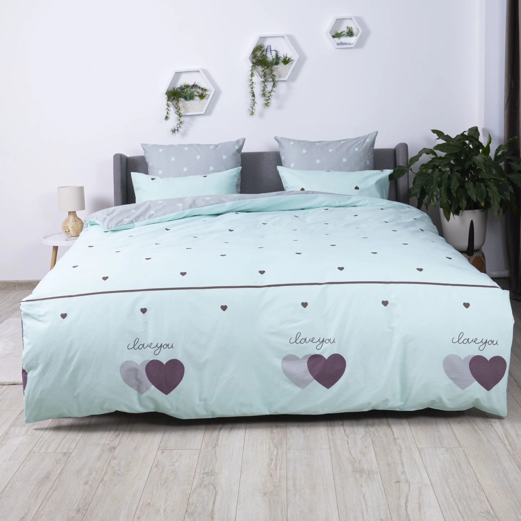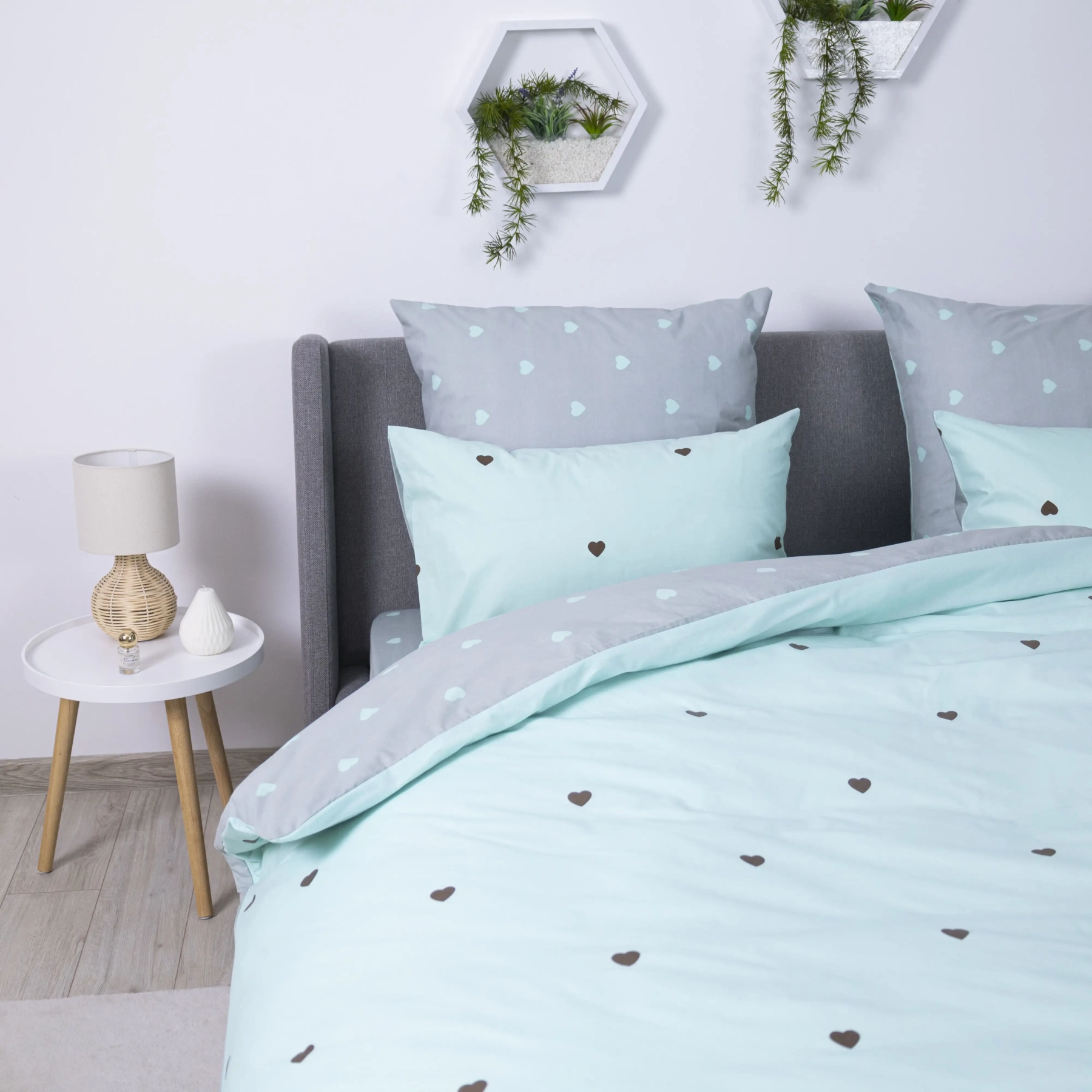 Комплект постільної білизни ТЕП "Happy Sleep" Mint&Grey Hearts, 50x70, сімейна