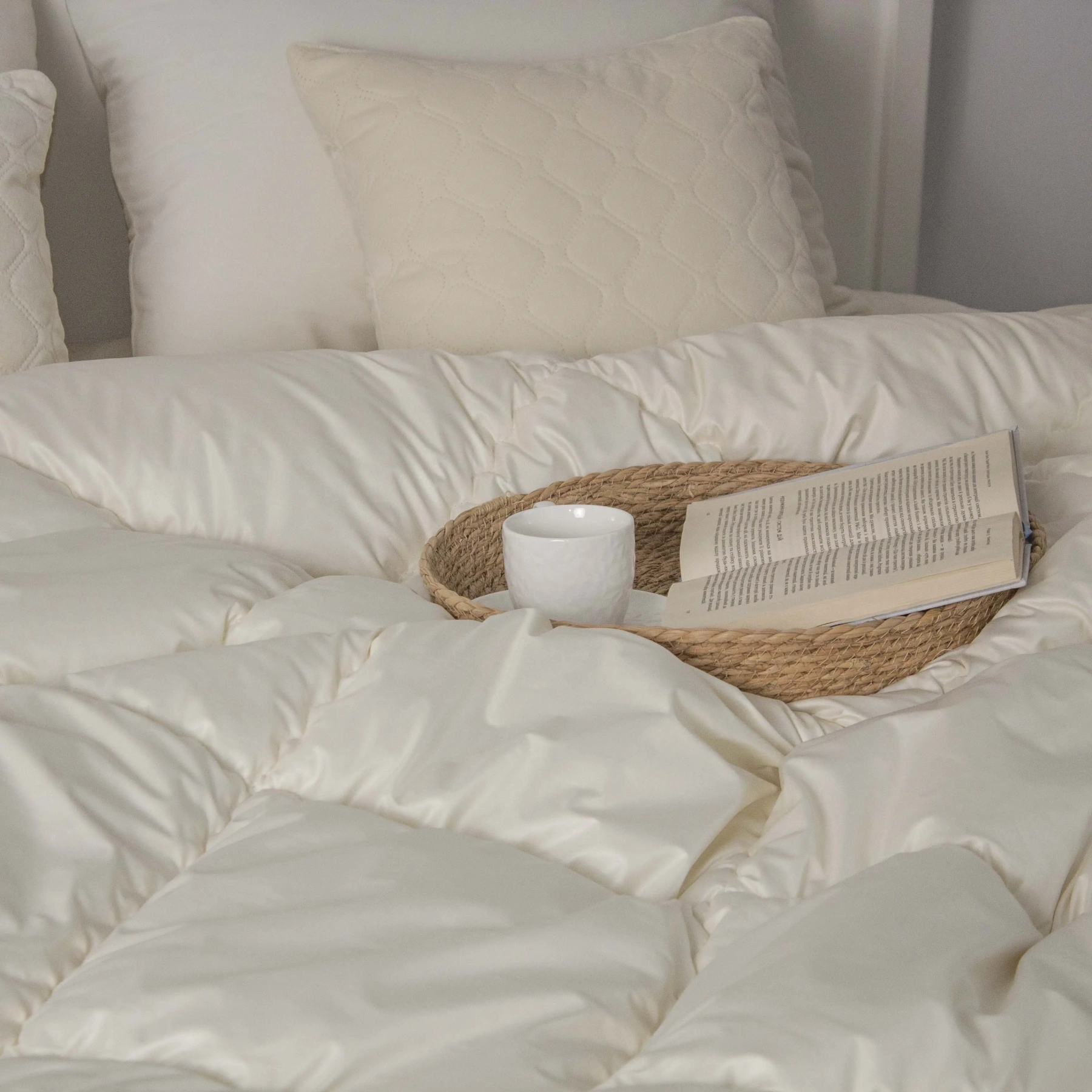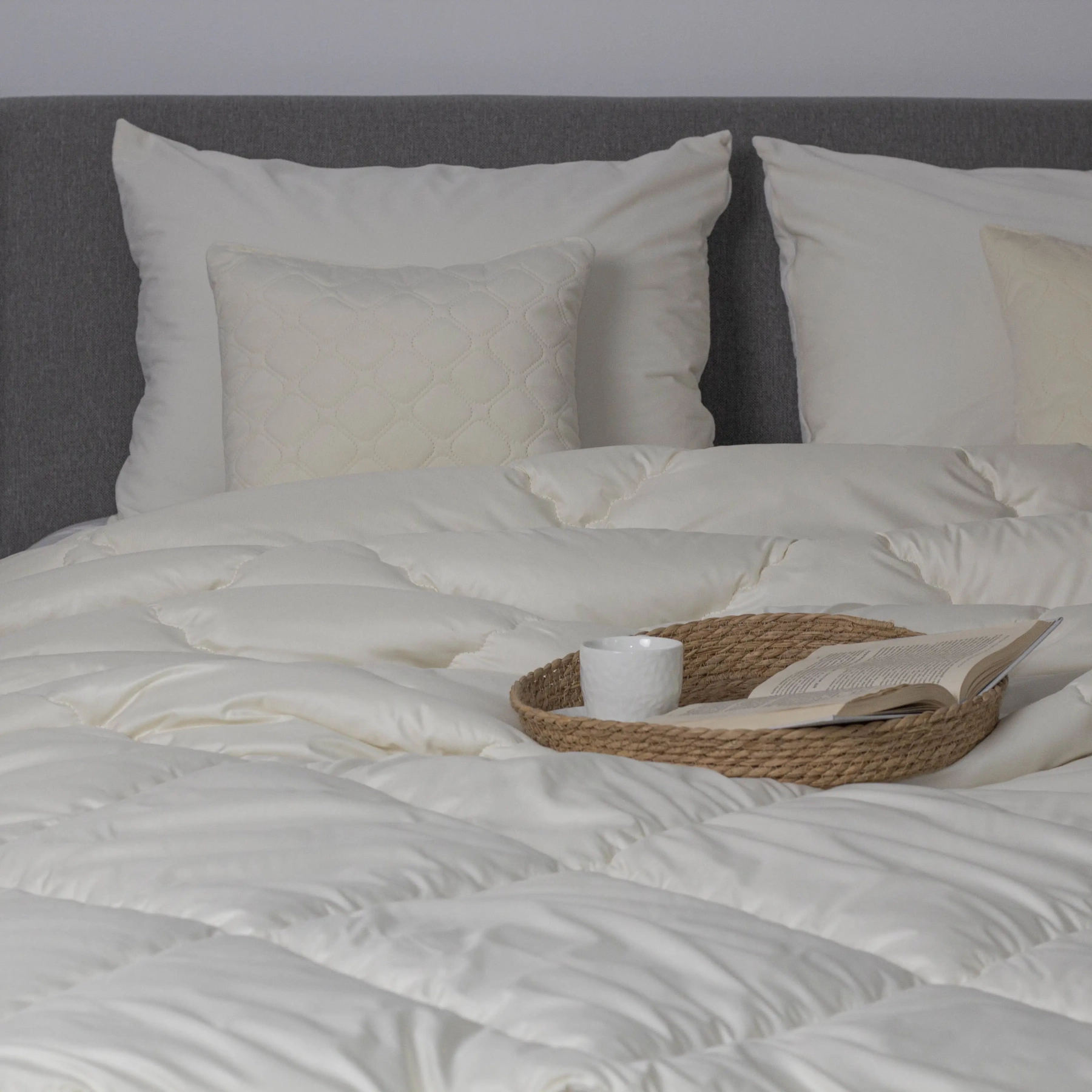 Інноваційна ковдра з технологією Double Air та натуральною овечою вовною у наповнювачі створює баланс тепла й легкості. Вона зберігає мікроклімат і комфорт як у холодні ночі, так і в більш теплий сезон.