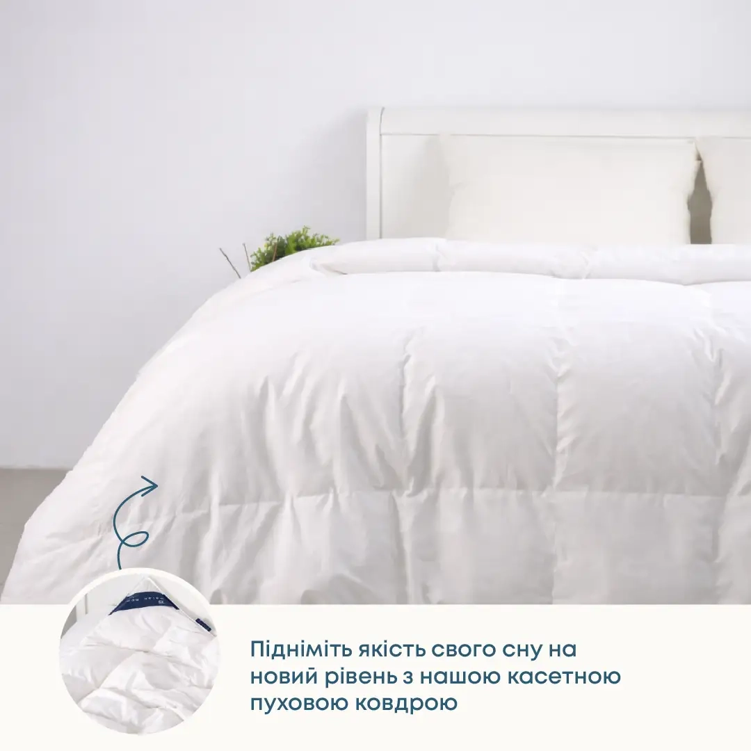 З нашою касетною пуховою ковдрою Ви будете насолоджуватися бездоганним комфортом і затишком кожної ночі.