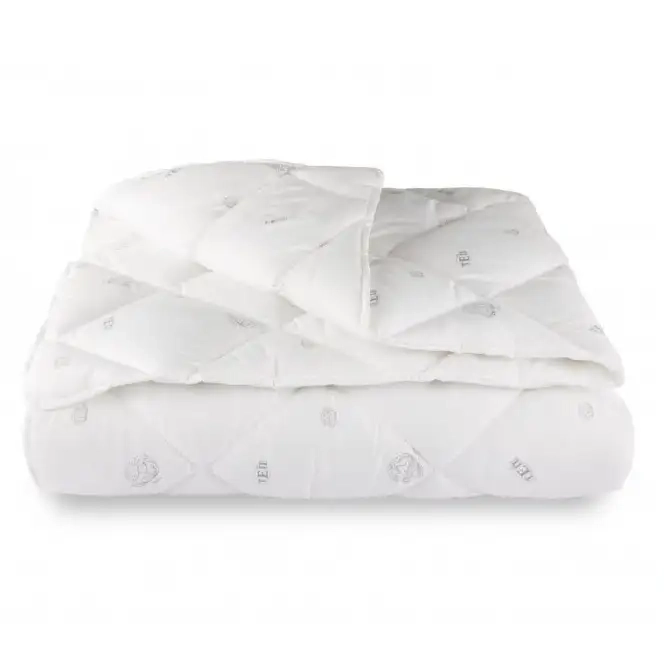 Матеріал та догляд:Зовнішня тканина: мікрофібра, 100% поліестер Наповнювач: 30% волокно бавовни / 70% поліефірне силіконізоване волокно Double Air Щільність наповнювача: 150 г/м² Ковдра проста у догляді: можна прати у пральній машині, швидко сохне та зберігає свої первинні властивості.