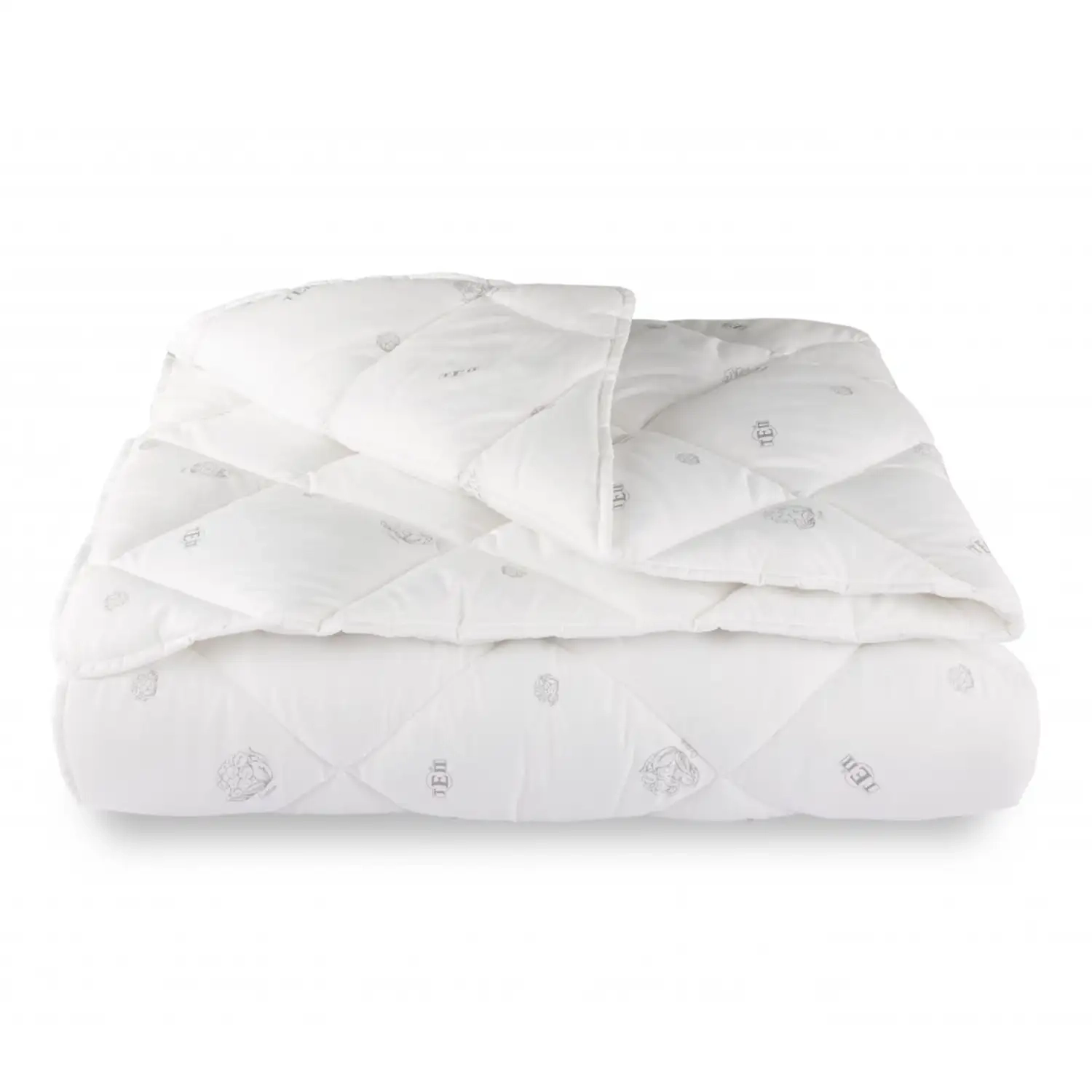 Матеріал та догляд:Зовнішня тканина: мікрофібра, 100% поліестер Наповнювач: 30% волокно бавовни / 70% поліефірне силіконізоване волокно Double Air Щільність наповнювача: 150 г/м² Ковдра проста у догляді: можна прати у пральній машині, швидко сохне та зберігає свої первинні властивості.
