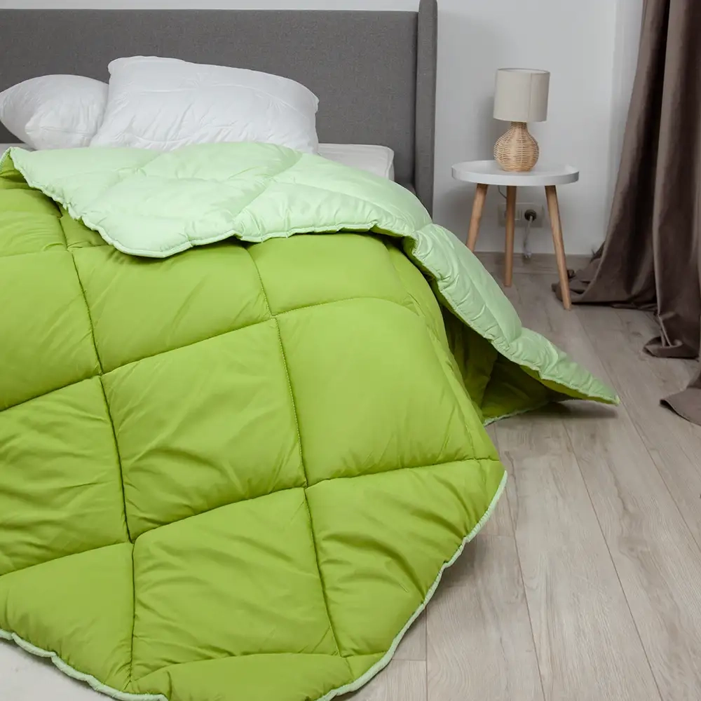 Наповнювач ковдри - антиалергійне полієфірне волокно DoubleAir, об’ємне та легке, добре утримує тепло.