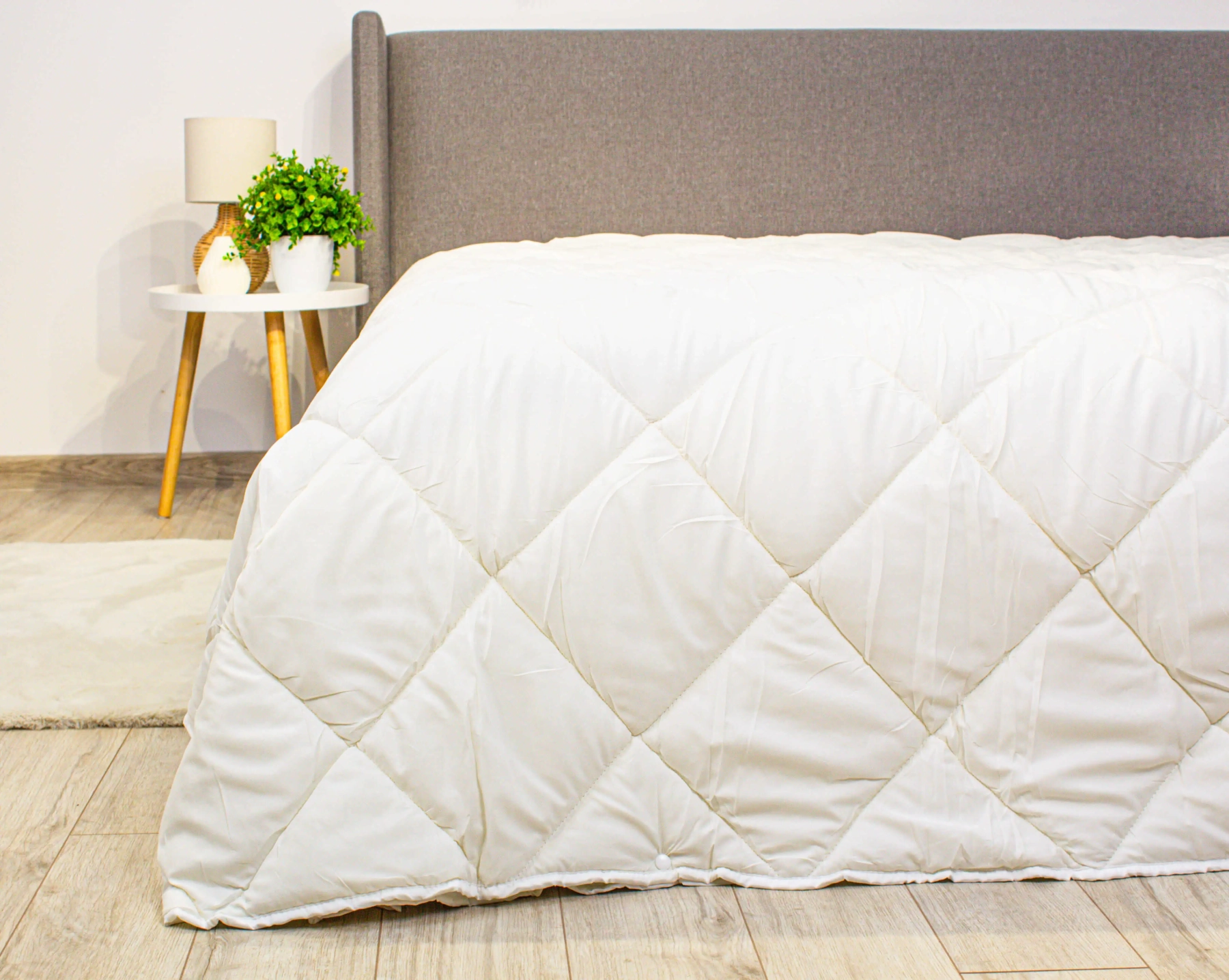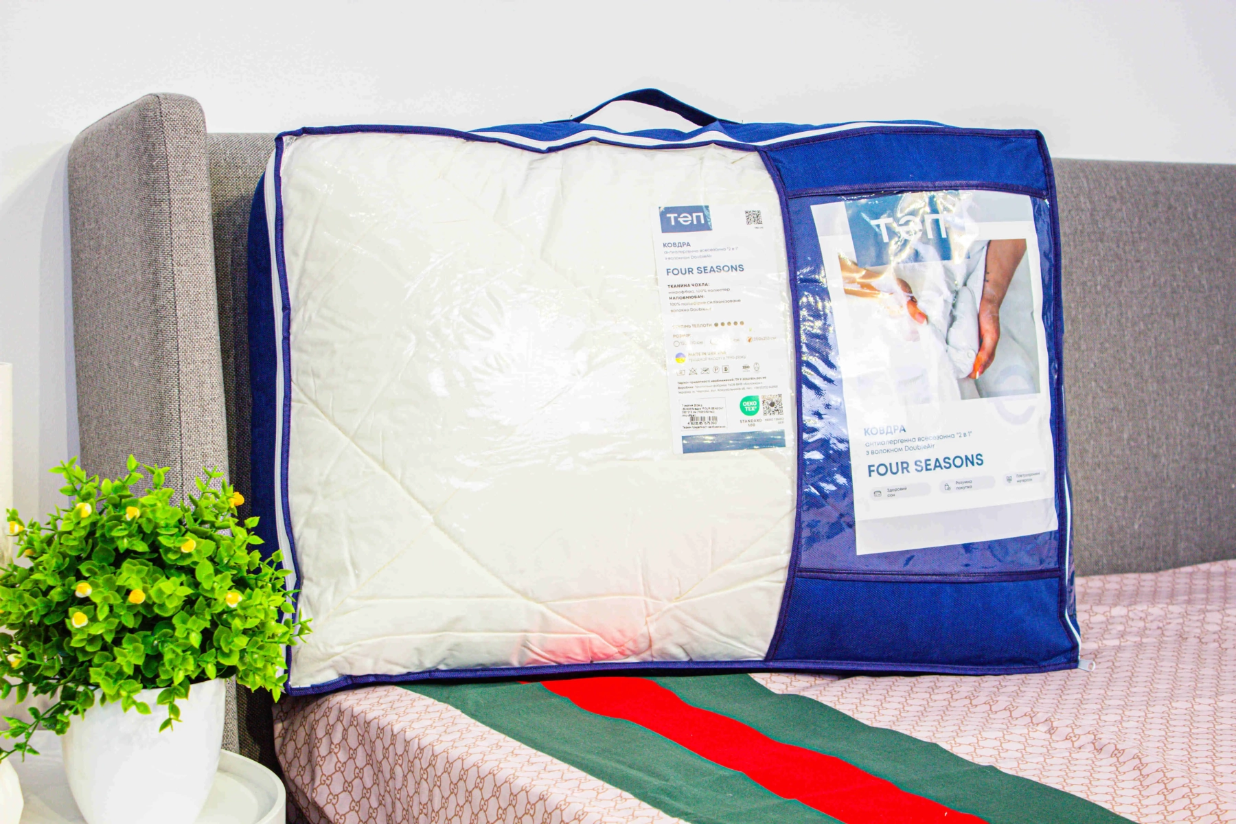 Функціональна ковдра 2-в-1 "Four Season" - прекрасний вибір на цілий рік. "Four Seasons" складається з двох повноцінних ковдр, які кріпляться між собою за допомогою кнопок. Перша більш об'ємна і тепла, друга - тонша. При потребі їх можна використовувати окремо одну від одної. Зовнішня тканина - біла мікрофібра, що добре пропускає повітря і відводить вологу.