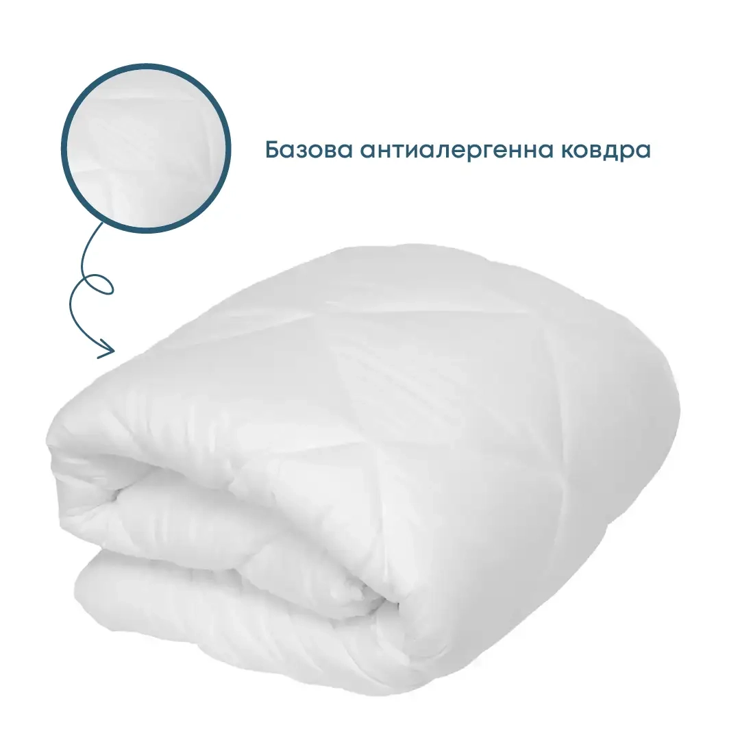 Ковдра виготовлена з добротних матеріалів і якісної сировини. Вона проста у використанні, не збивається, добре відновлюється після прання. Зовнішня тканина - біла мікрофібра, що добре пропускає повітря і відводить вологу. Наповнювач ковдри - антиалергенне полієфірне волокно Quadro Air, об’ємне та легке, добре утримує тепло. Завдяки технології рівномірного розподілу наповнювача та фігурній вистебці, наповнювач не збивається, а ковдра довго служить.