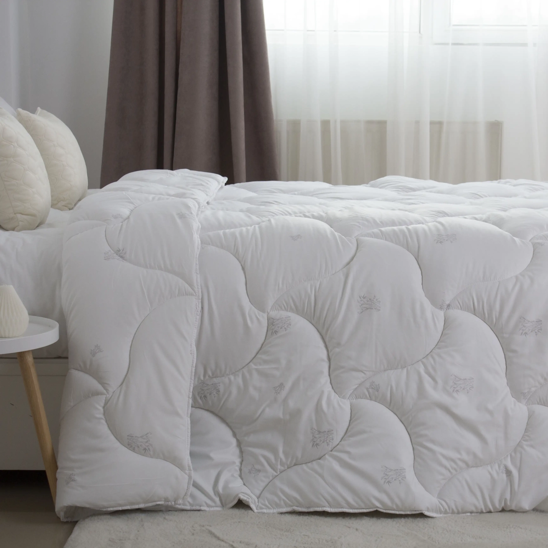 Зручна м'яка ковдра на основі ніжного ультратонкого полієфірного волокна, штучного лебединого пуху, який не відрізняється від справжнього. Наповнювач ковдри екологічно чистий, не викликає алергії, добре пропускає повітря. Цупкий чохол з бавовняної тканини тік приємний на дотик, не пропускає дрібних волокон назовні. Завдяки технології рівномірного розподілу наповнювача та фігурній вистебці, наповнювач не збивається, а ковдра довго служить.