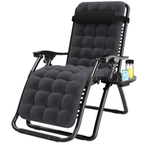 Крісло-шезлонг Zero Gravity LEOBRO з подушкою, складане, чорне (ZGC-R03-PP)