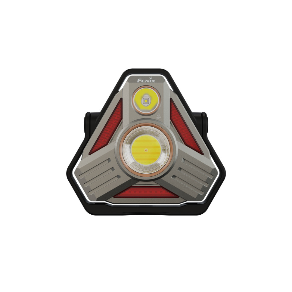 Опис кемпінгового ліхтаря Fenix CP50R:Fenix CP50R — це професійний ліхтар для кемпінгу, сервісних робіт та дорожніх служб, який пропонує розширений функціонал для професійних та повсякденних завдань. Унікальна трикутна форма корпусу нагадує попереджувальний знак, що робить модель незамінним помічником на небезпечних робочих майданчиках та на дорозі.Система випромінювачів складається зі смуги чотириколірних діодів COB, двадцяти чотирьох червоних 3014 та центрального білого Luminus SFT70, що видає яскравість до 5500 люменів. Колірна температура м'яко регулюється в діапазоні 2700–6500К (для прожекторного та комбінованого світла), тоді як температура далекобійного світла залишається фіксованою на рівні 6500К.яскравість до 5500 люменівРежими роботи та особливості керуванняУ CP50R доступні 3 групи режимів білого світла та п'ять аварійних виходів, що дозволяє швидко адаптувати світло під поточне завдання — від освітлення робочого простору до позначення небезпечної зони.Далекобійне + прожекторне світло