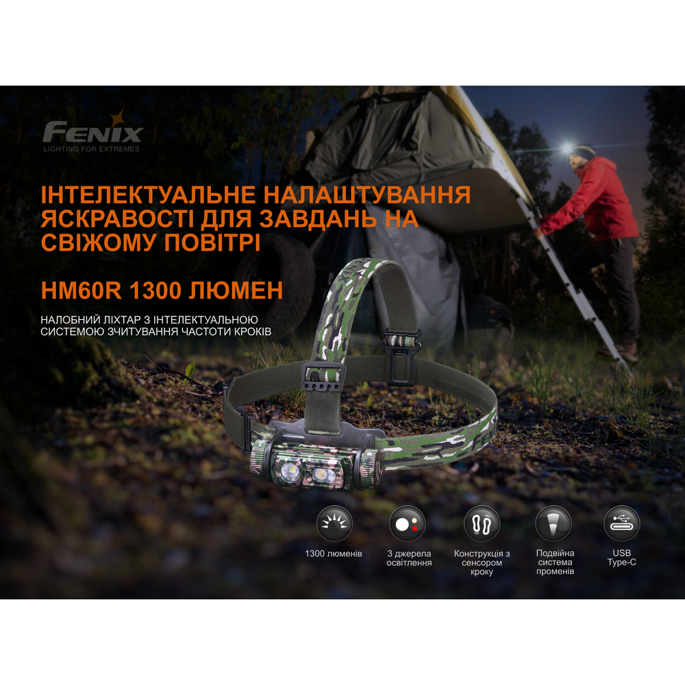 Опис ліхтаря налобного Fenix HM60R, камуфляж | Лімітована серія: