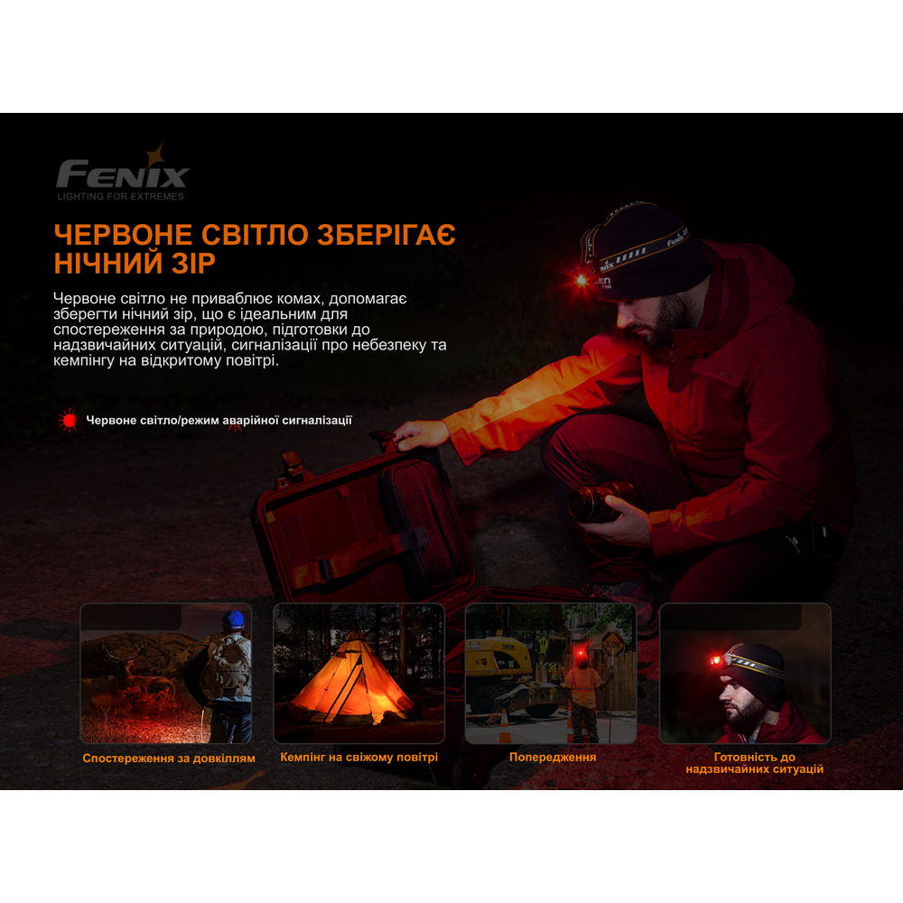 Поєднання потужного дальнього світла (1300 люмен), нейтрального діода з високим індексом CRI для роботи поблизу та червоного світла робить його універсальним інструментом для будь-яких сценаріїв.