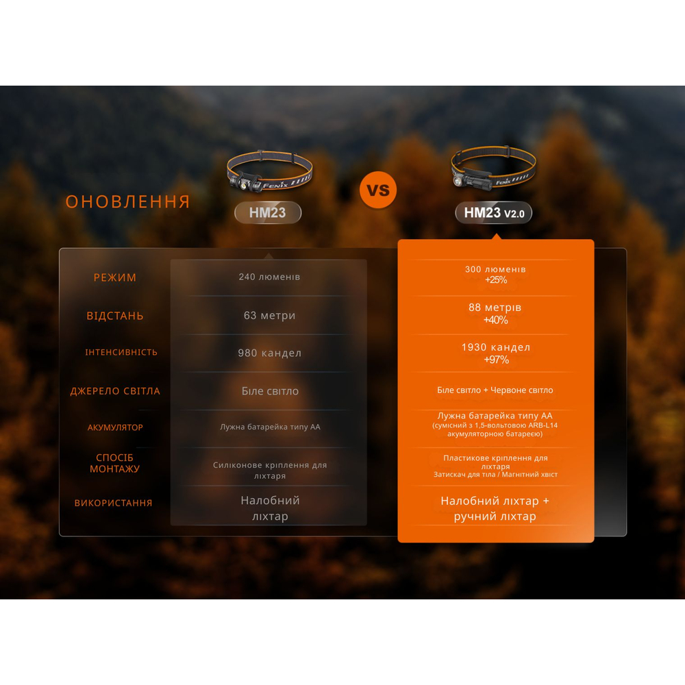 Опис налобного ліхтаря Fenix HM23 V2.0: