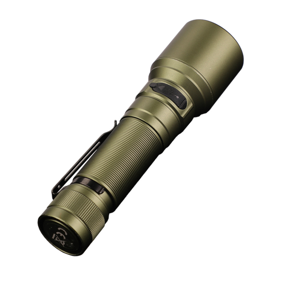 Корпус з алюмінієвого сплаву A6061-T з твердим анодуванням HAIII стійкий до зношування та корозії. Дрібна накатка покращує хват. Вага конструкції — 172 г.