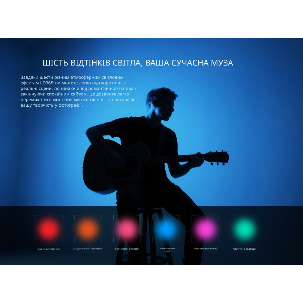 Кольорові діоди випромінюють світло у 6 різних відтінках, дозволяючи налаштовувати освітлення під поточний настрій та потреби для створення контенту. Термін служби кожного світлодіода складає 50000 год.