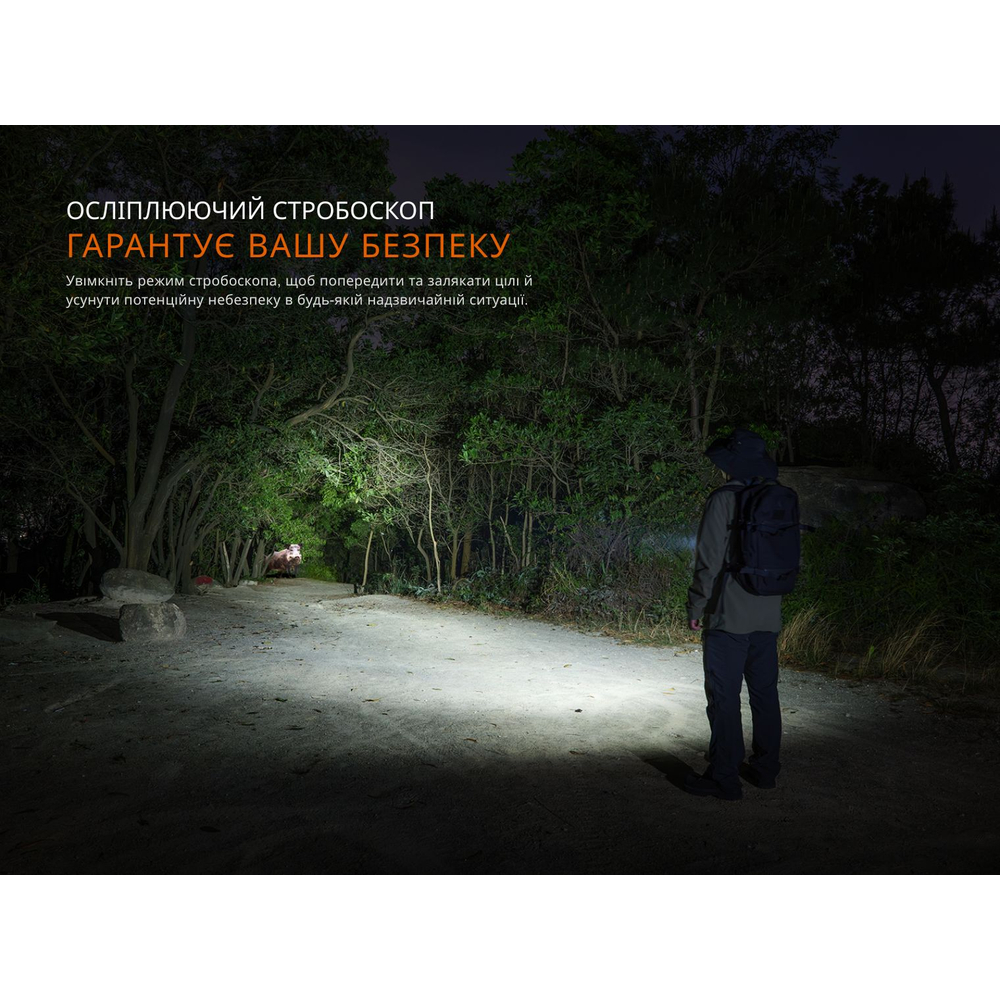 Ліхтар Fenix LD36R, акумулятор ARB-L21-6000, зарядний кабель USB-С, дифузійний фільтр AOD-04, запасне ущільнювальне кільце, чохол, темляк, посібник користувача, гарантійний талон.