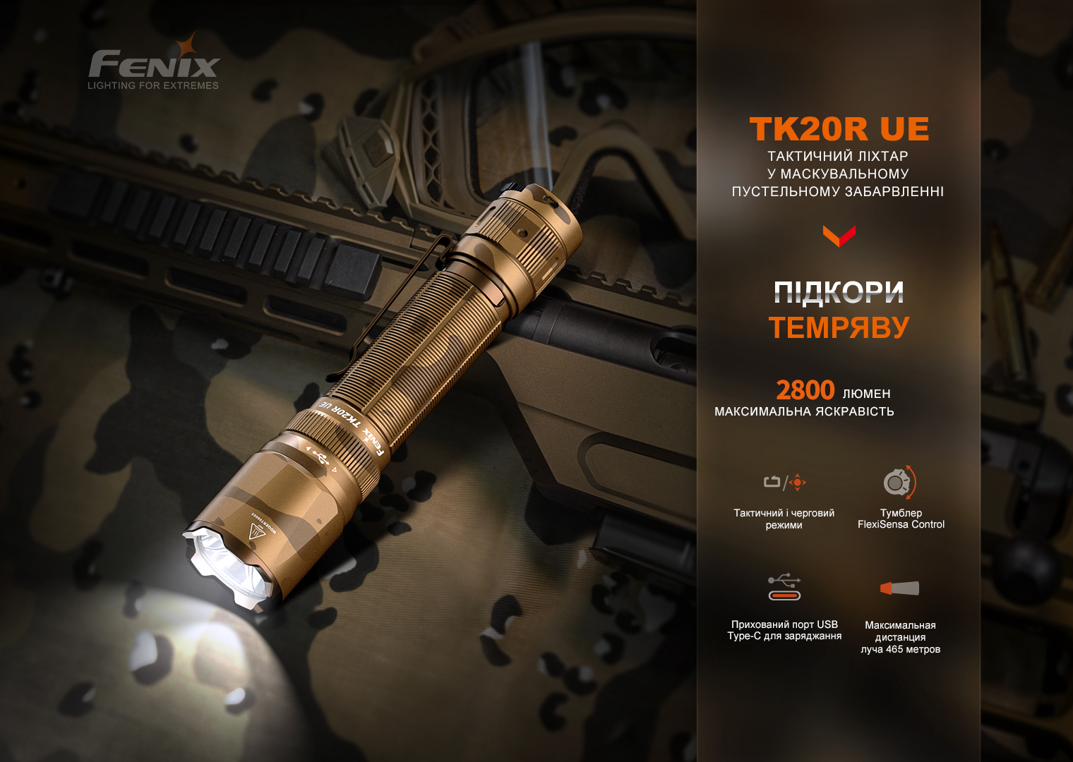 Працівники правоохоронних органів та військовослужбовці потребують особливих освітлювальних пристроїв, що здатні витримувати високі навантаження і при цьому якісно освітлювати великі відстані. Спеціально для цієї категорії користувачів бренд Fenix розробив ліхтар TK20R UE — компактну модель яскравістю до 2800 люмен у разі роботи в режимі Турбо.