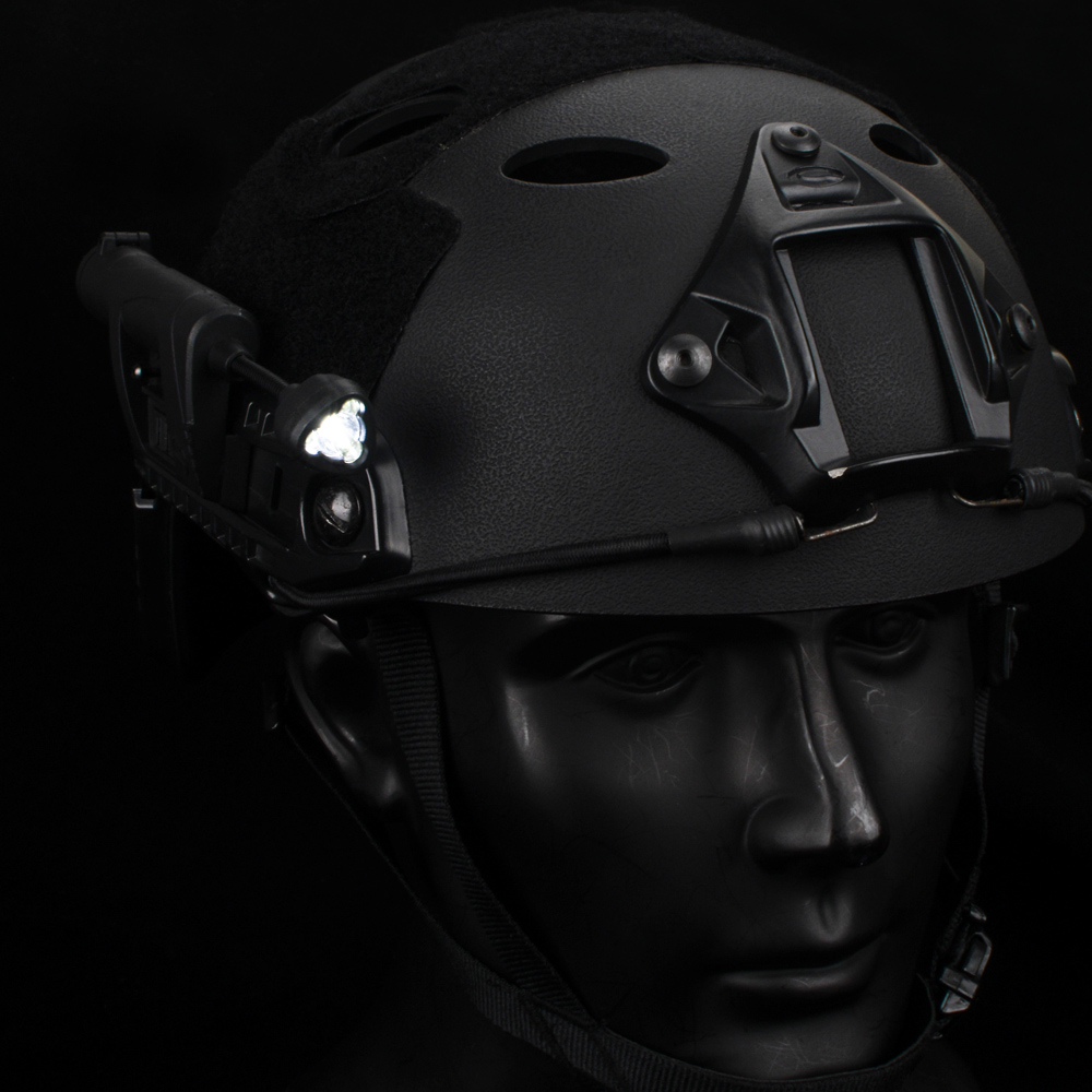 трьома ультраяскравими світлодіодами, що світять у червоному, зеленому та інфрачервономуПідходить для більшості шоломів типу MICHT, FAST та аналогів. Кріпиться збоку на рейку, або напряму до шолома (в комплекті є кріплення). Також є кріплення на стропи MOLLE/PALS.