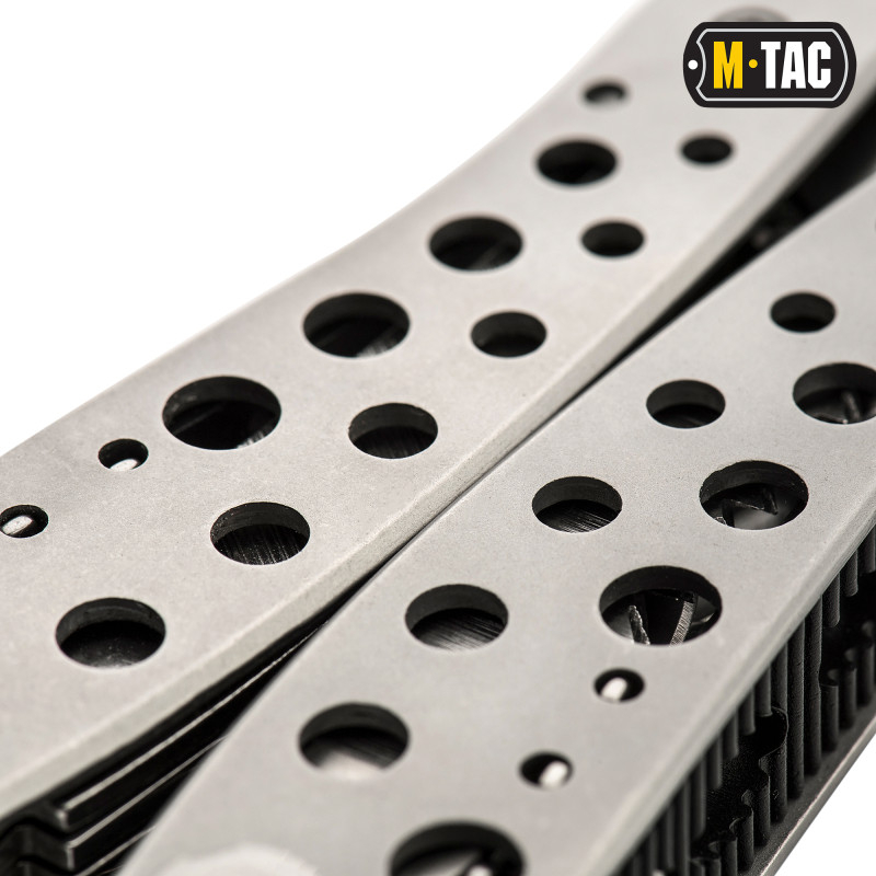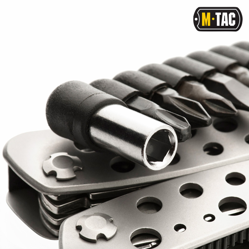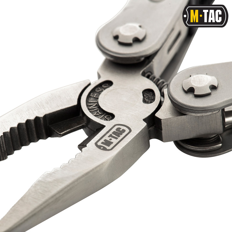 Виготовлений з нержавіючої сталі 440С марки, що гарантує довговічність та міцність інструментів навіть при довготривалому їх застосуванні. Мультитул TYPE 1 має: ніж, напилок (терпуг), викрутку, бітотримач і 9 насадок різного розміру, шило, консервний ніж і відкривачку для пляшок, хрестову викрутку, пилку та плоскогубці, які розкладаються відведенням рукояток. Всі елементи щільно фіксуються у відкритому та закритому положенні. Завдяки ергономічній формі, мультитул відмінно лежить в руці та не зісковзує під час роботи.