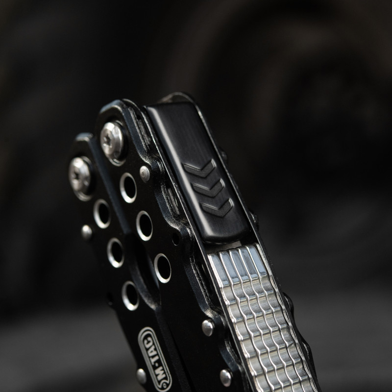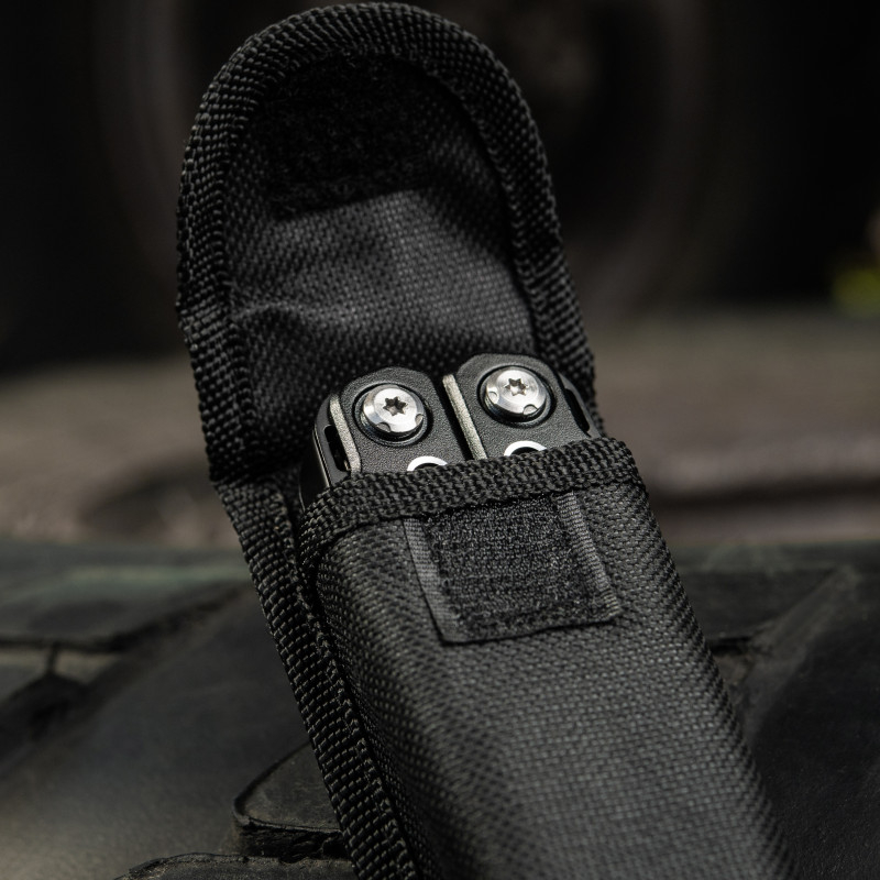 Мультитул комплектується спеціальним чохлом, який за допомогою стропи можна кріпити до спорядження. Також він добре поміщається в сумці або рюкзаку, не займаючи при цьому багато місця.