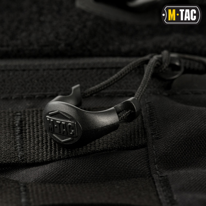 M-Tac рюкзак Elite Large відкривається за принципом валізи, що зручно при укладанні речей. Всередині на відкритому клапані конструктори додали Velcro- панель для додаткових модульних вставок. Спинка і лямки – з демпферами та з сіткою. Плечові лямки додатково фіксуються зверху за допомогою строп з протяжками, що забезпечує кращий розподіл ваги рюкзака. У даній генерації пластикова спинка з алюмінієвими вставками і горизонтальним стрижнем з карбону.