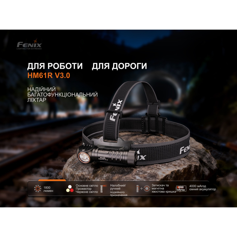 Fenix HM61R V3.0 — це універсальний освітлювальний пристрій, який завдяки знімному кріпленню та сталевій кліпсі трансформується з налобного ліхтаря в ручний або нагрудний.