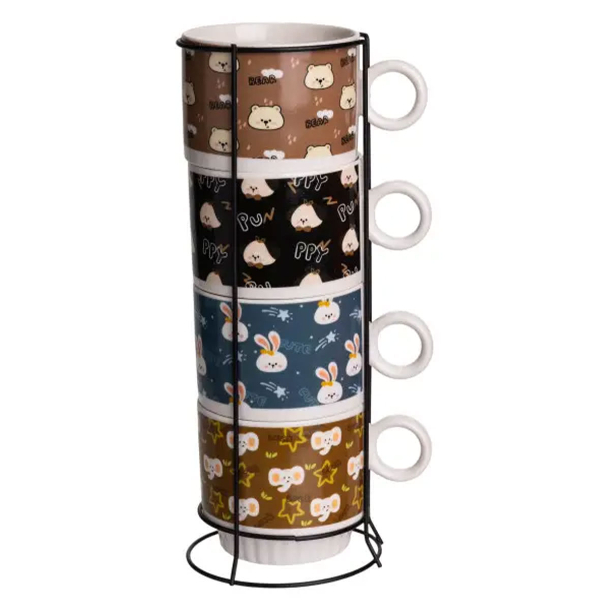 Набір порцелянових чашок із яскравими дитячими малюнками — це не просто посуд, а справжній елемент затишку та радості на вашій кухні. Чотири чашки об'ємом по 300 мл акуратно розміщуються в зручній вертикальній металевій підставці, яка економить місце та робить зберігання стильним і компактним. Основні характеристики набору чашок на металевій підставці: Об'єм чашки: 300 мл; Верхній діаметр чашки: 8.5 см; Нижній діаметр чашки: 6.5 см; Висота чашки: 7.5 см; Висота підставки: 26 см; Матеріал чашок: порцеляна; Матеріал підставки: метал. Особливості набору чашок на подарунок: Зручні круглі ручки — комфортно тримати навіть дитячою рукою. Матеріал: якісна порцеляна — приємна на дотик, добре утримує тепло. Підставка з хромованого металу — довговічна, не темніє, легко очищається. Універсальне застосування — чудово підходить для дому, а також стане прекрасним подарунком на новосілля, день народження або дитяче свято. Такий набір порцелянових чашок із підставкою — це вдале поєднання краси, комфорту та функціональності. Він стане окрасою будь-якого інтер'єру, додасть яскравих барв у повсякденні чаювання й подарує гарний настрій кожному члену сім'ї.
