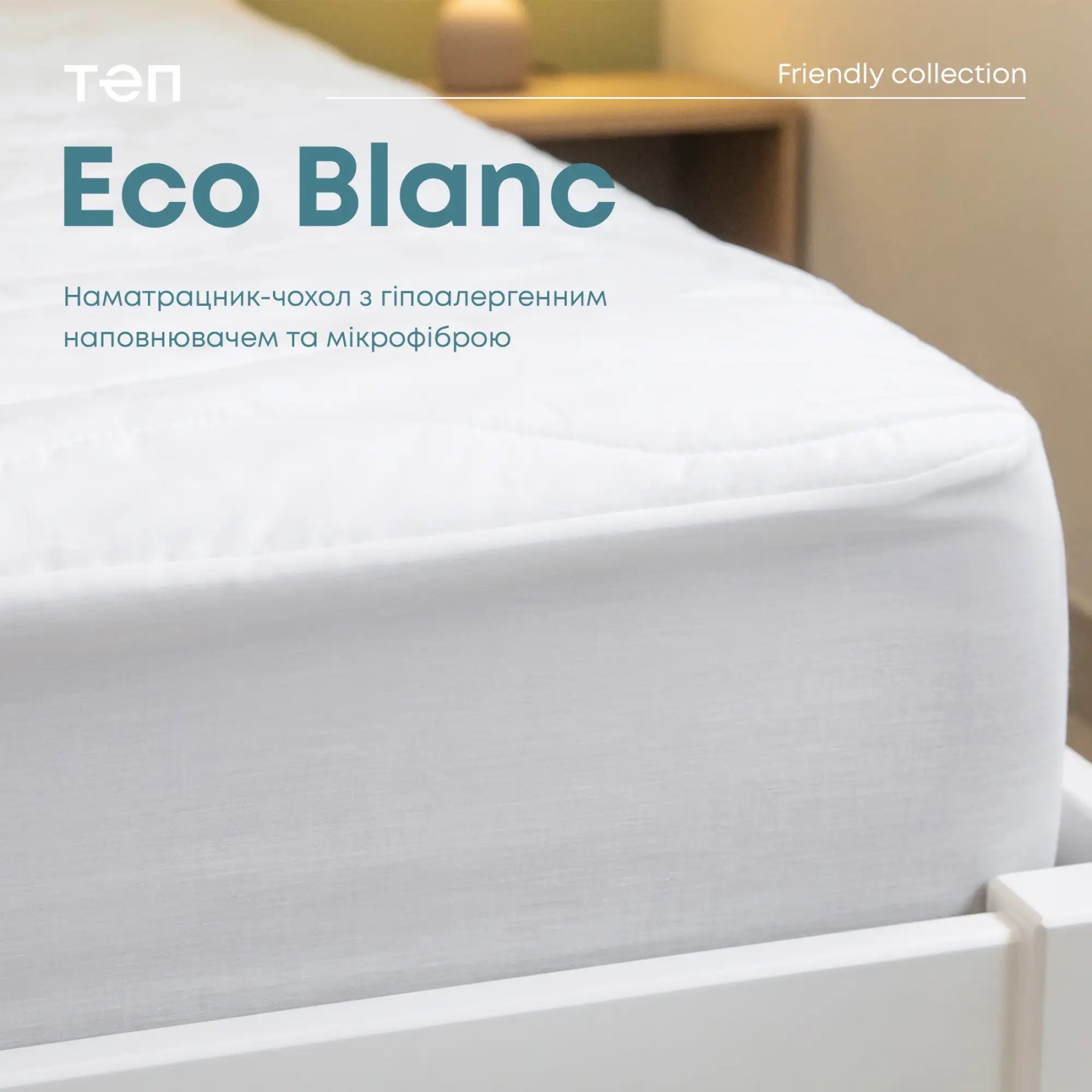 Наматрацник-чохол ECO BLANС від ТЕП з гіпоалергенним наповнювачем та мікрофіброю, береже матрац від забруднень і значно підвищує комфорт та м'якість спального місця.