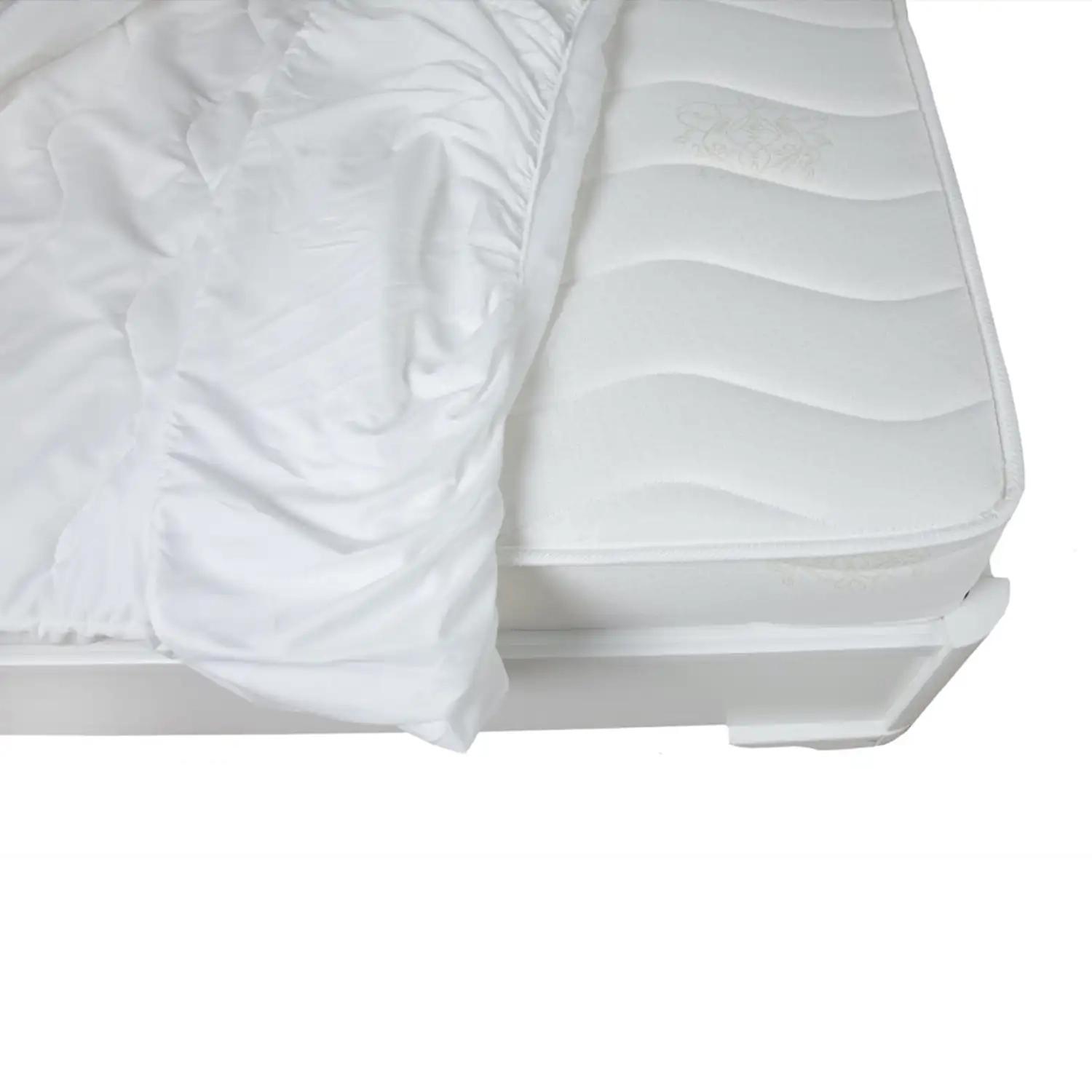 - Надійно фіксується на матраці за допомогою еластичного подолу на гумках - не утворює складки під час сну;