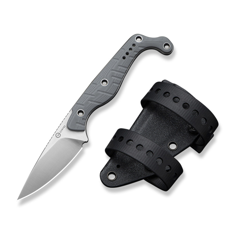 фіксований ніж Civivi для тактичних завдань та самооборони;дизайнер – Кайл Лемб (Kyle Lamb);надміцна конструкція Full Tang;профіль клинка – Drop Point;матеріал клинка – преміальна нержавіюча сталь Nitro-V;твердість клинка – 59-61 HRC;обробка сталі – галтування (stonewash);тип заточування – прямий;матеріал накладок на руківʼї – G10;повна довжина ножа – 182.1 мм;довжина клинка – 71.6 мм;довжина леза – 65.6 мм;товщина клинка в обуху – 3 мм;довжина руківʼя – 110.5 мм;товщина руківʼя – 9 мм;вага – 83 г;двопозиційна кліпса з нержавіючої сталі;в комплекті є чохол із кайдекса з 2 ремінцями для кріплення на поясі.