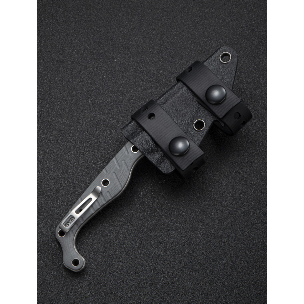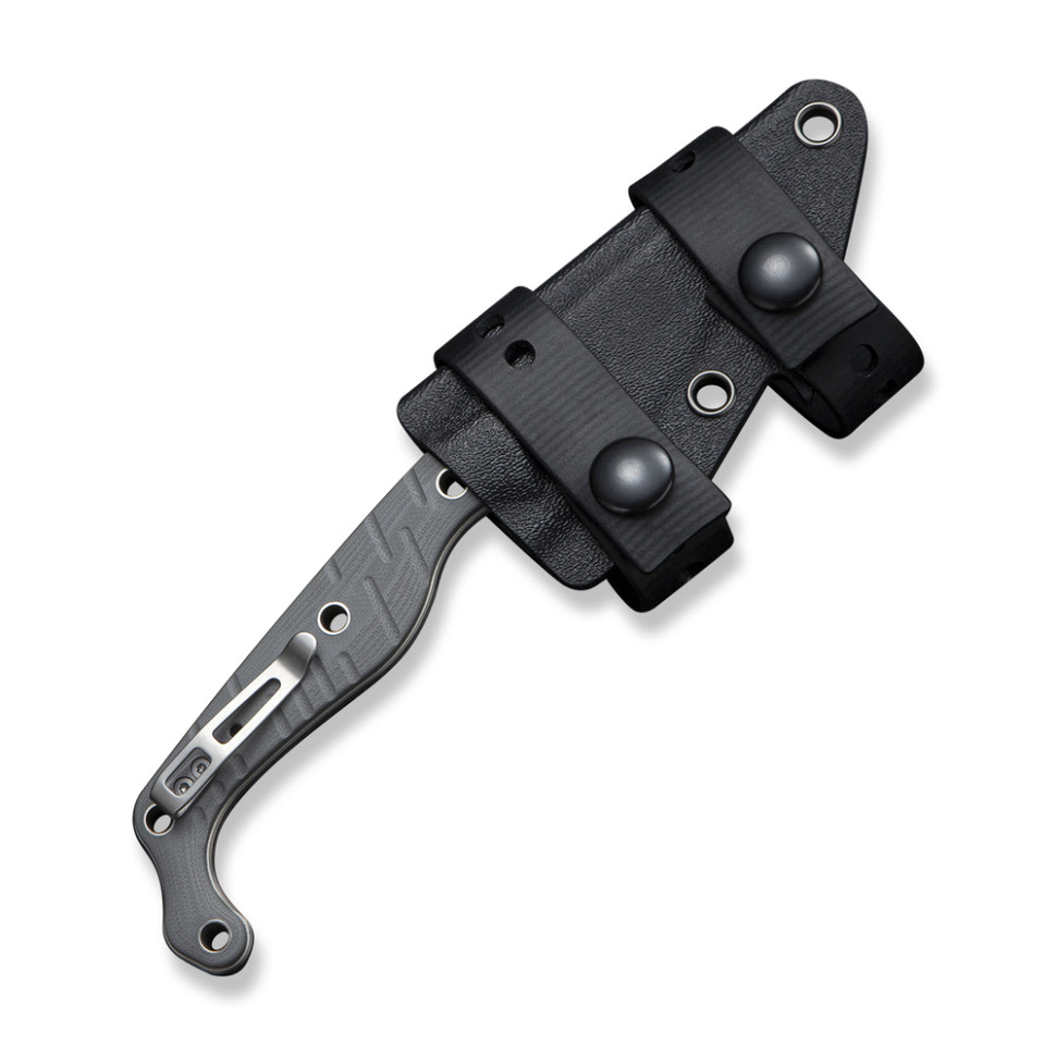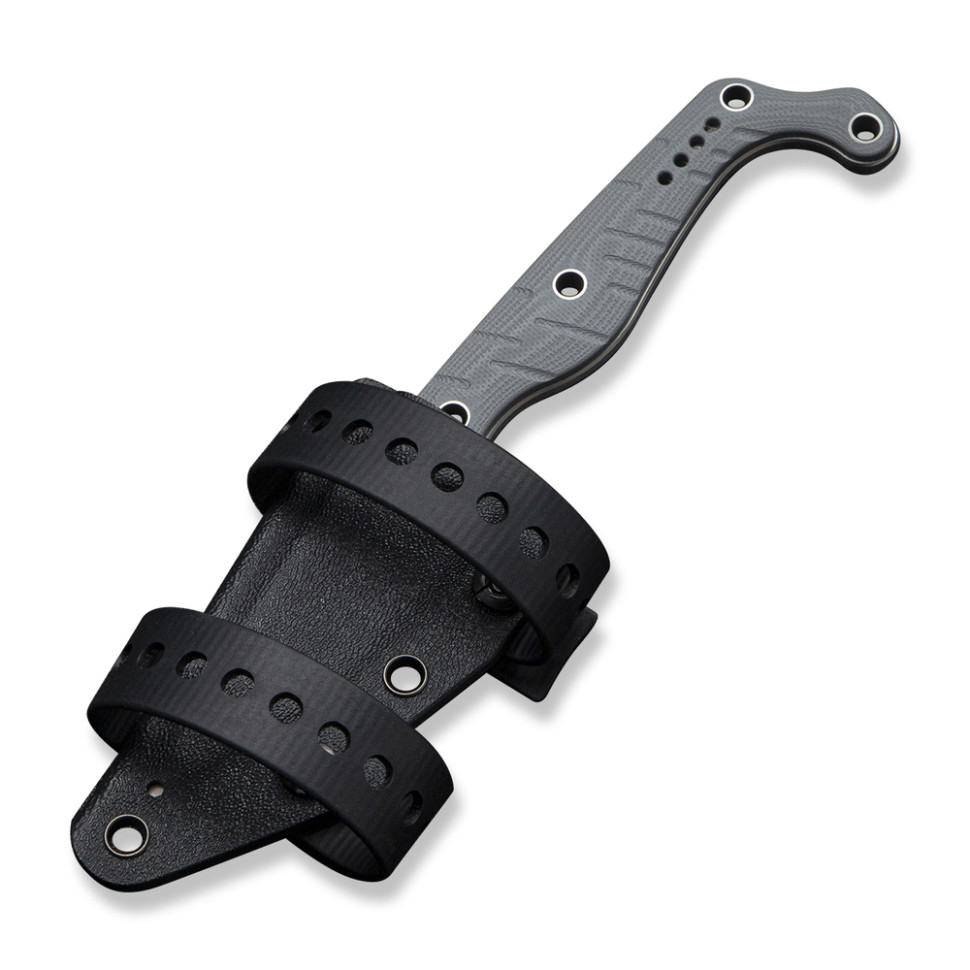 Накладки G10 по обидва боки руківʼя. Багатошаровий композит стійкий до вологи та зношування, не вбирає воду та зберігає цілісність під час механічних впливів. Скошення по краях забезпечують комфортний хват без тиску на долоню. Наскрізні отвори роблять ніж легшим і дозволяють кріпити його на спорядженні в різних положеннях.