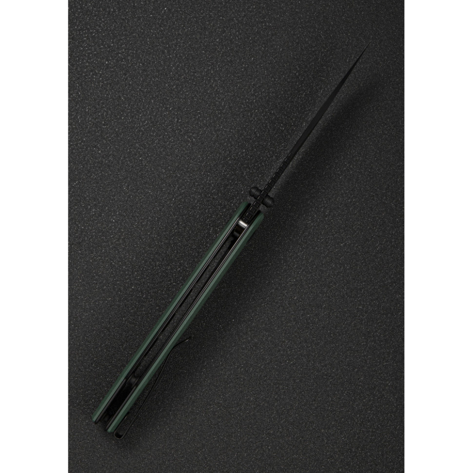 Нержавіюча сталь 9Cr18MoV у клинку. Сталь належить до корозійностійких сплавів завдяки вмісту хрому 17–19%. Клинок довго тримає гостру кромку та швидко заточується, а твердість на рівні 58–60 HRC гарантує стійкість леза до інтенсивних навантажень без сколів. Чорний фініш прибирає відблиски та маскує сліди пальців на металі.Нержавіюча сталь 9Cr18MoV у клинку.Руківʼя з накладками G10. Склопластик цінується за високу міцність при низькій вазі. Матеріал не поглинає вологу, несприйнятливий до впливу хімії та різких перепадів температури. Текстурована поверхня робить хват міцним без ковзання, а плавні скошення по краях плашок виключають тиск на шкіру.Руківʼя з накладками G10.Замок Liner Lock розрахований на керування однією рукою та не боїться інтенсивних ударних навантажень. В осьовому вузлі встановлені керамічні підшипники, які надають ходу клинка максимальної плавності.Замок Liner Lockкерамічні підшипникиДля непомітного носіння в кишені передбачено двопозиційну кліпсу Tip-Up з нержавіючої сталі. У хвості також є отвір для темляка.Характеристики:Характеристики: