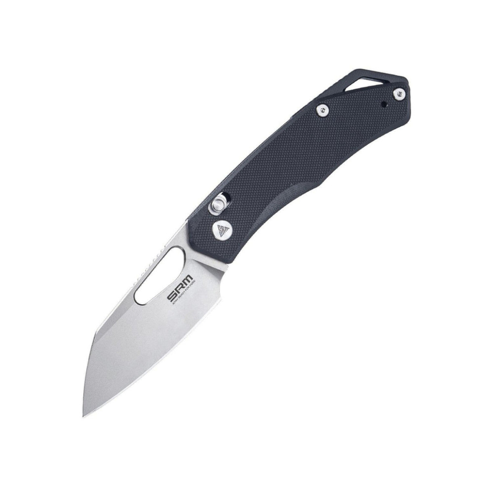 Опис складаного ножа SRM Cub 261M-GB, чорного:SRM Cub 261M-GB — універсальний складаний ніж, який однаково підходить на роль як повсякденної EDC-моделі, так і міцного інструменту для полювання, активного відпочинку або робочих завдань.Профіль клинка Wharncliffe має характерне зниження обуха до вістря, що подовжує різальну кромку та робить ніж особливо ефективним у контрольованому різанні. Матовий фініш Bead Blast зменшує відблиски та приховує сліди експлуатації, зберігаючи акуратний вигляд клинка в активному використанні.WharncliffeНа обуху передбачені насічки для упору великим пальцем, щоб додати точності та безпеки при силовій роботі.У ножі SRM Cub 261M-GB використовуються такі матеріали:
