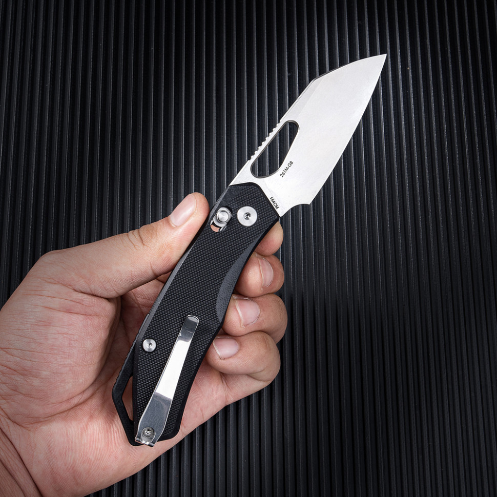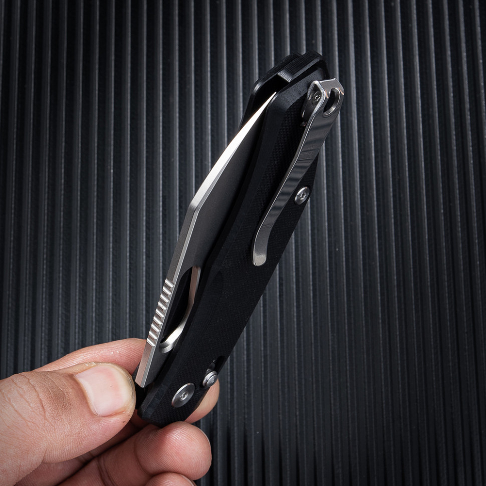 є сталева кліпса Tip-Up, що переставляється на будь-який бік руківʼя.