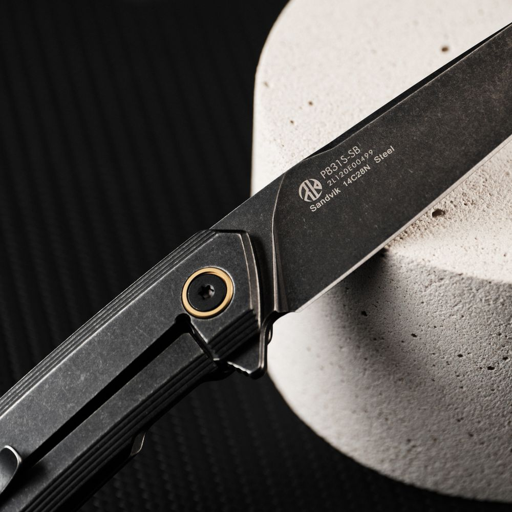 кишеньковий ніж зі складаним клинком, оновлена версія бестселера P831-SF;матеріал клинка – Sandvik 14C28N;твердість клинка – 57-59 HRC;метод обробки клинка – галтування;профіль клинка – зворотний танто;тип заточування – прямий;інструмент відкривається натисканням на сталевий плавець фліпера;плавність відкривання забезпечується завдяки кульковальнику з високовуглецевої, хромовмісної сталі;тип замка – frame lock;матеріал руківʼя – нержавіюча сталь 3Cr14N;є кліпса та отвір для темляка;повна довжина – 195 мм;довжина клинка – 85 мм;товщина клинка в обуху – 3.1 мм;довжина руківʼя – 110 мм;вага – 93 г;гарантія – 5 років.