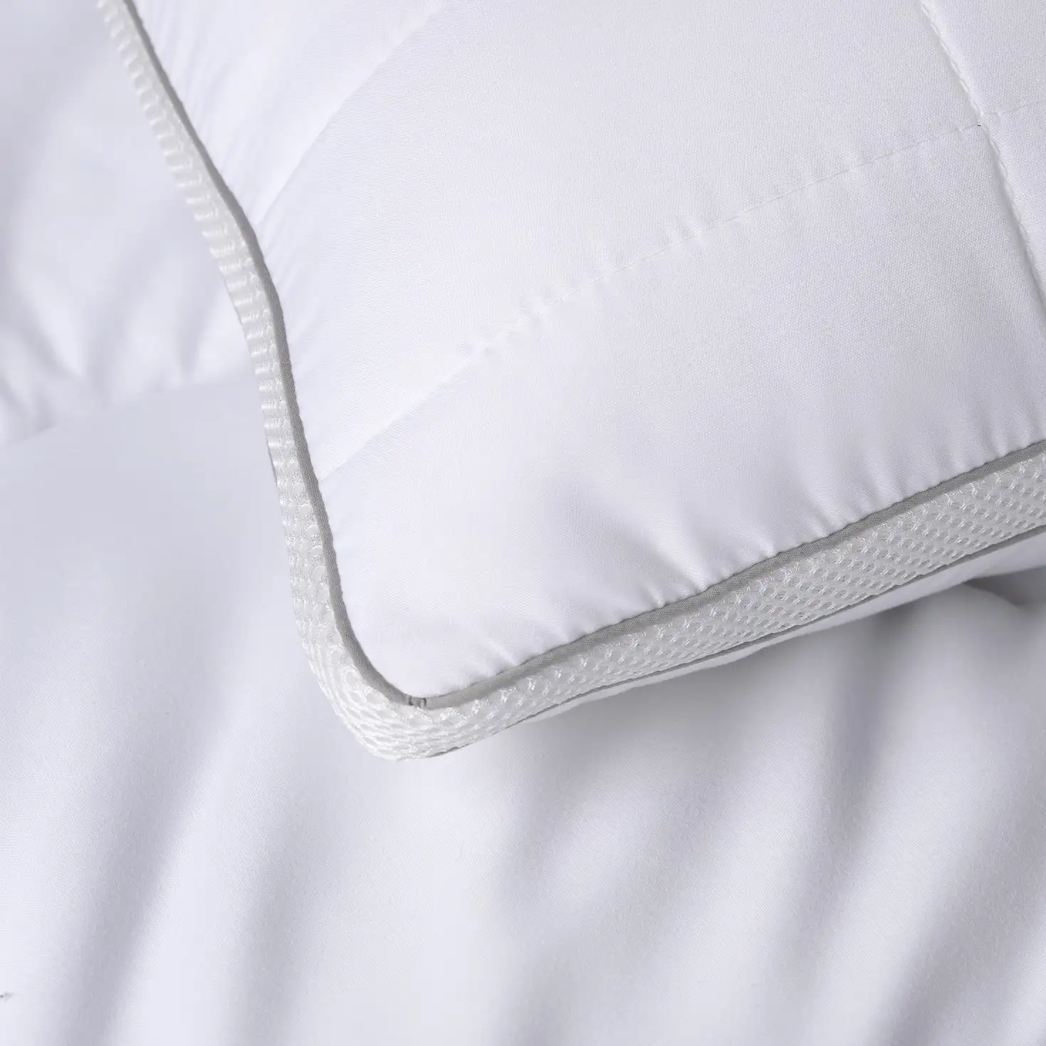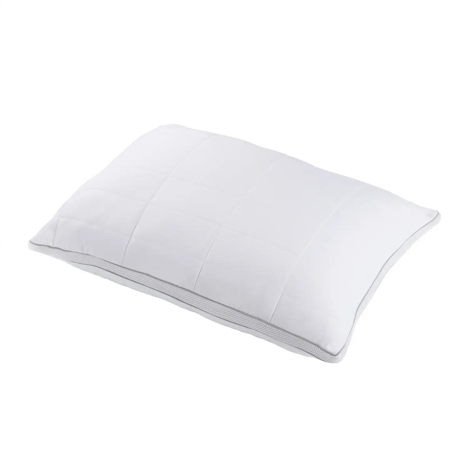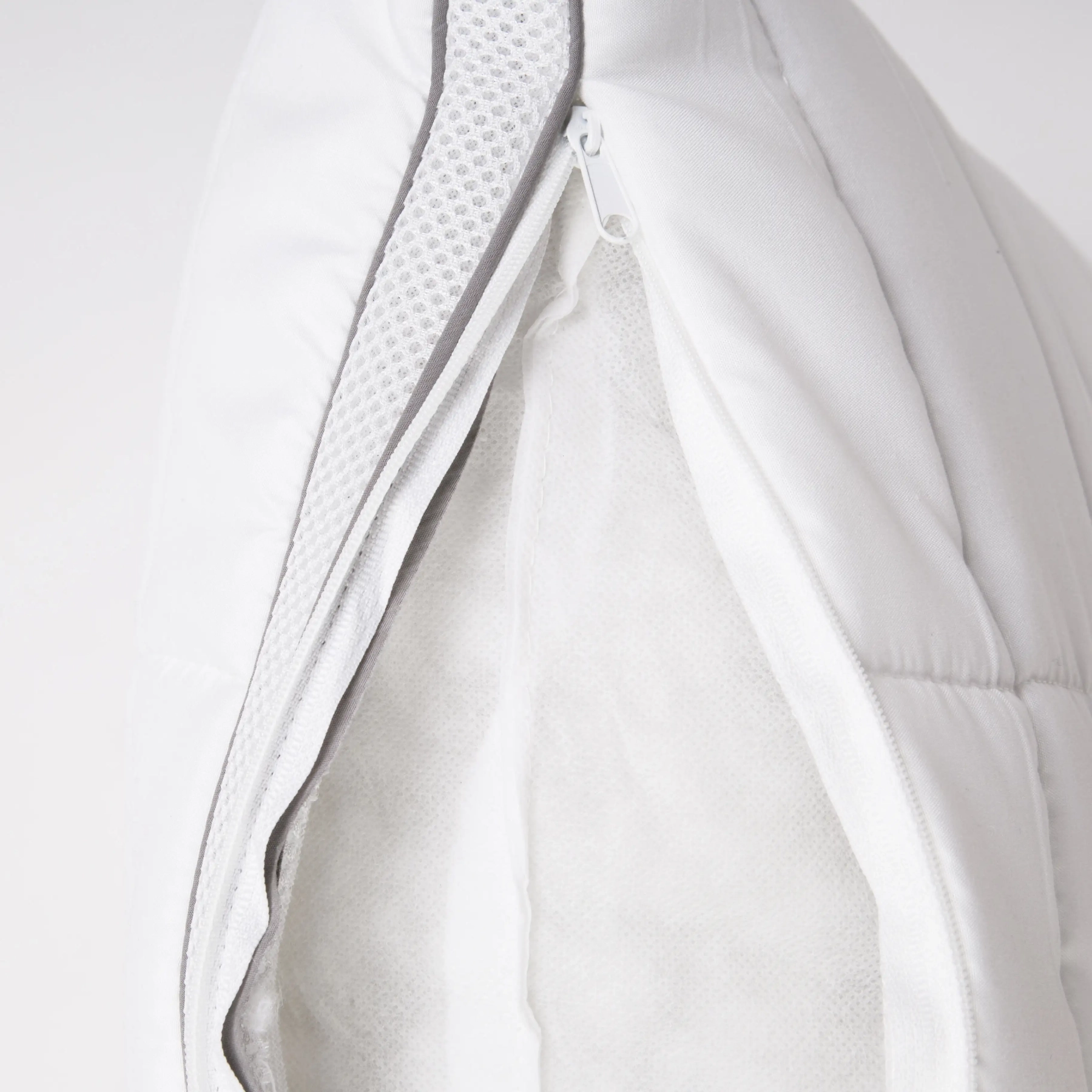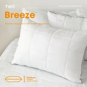 Подушка ТЕП Breeze має унікальну систему мікроклімату завдяки тривимірній аеросітці, що створює природну вентиляцію. Зовнішній зйомний чохол на блискавці, наповнений ультратонким волокном. Внутрішній наповнювач подушки - гіпоалергенне поліефірне силіконізоване волокно DoubleAir. Воно добре відновлює форму після стиснення, не вбирає вологу і запахи. Наповнювач рівномірно розподілений по всьому об'єму подушки, він не збивається протягом тривалої експлуатації. Подушка відмінно зберігає і відновлює форму.
