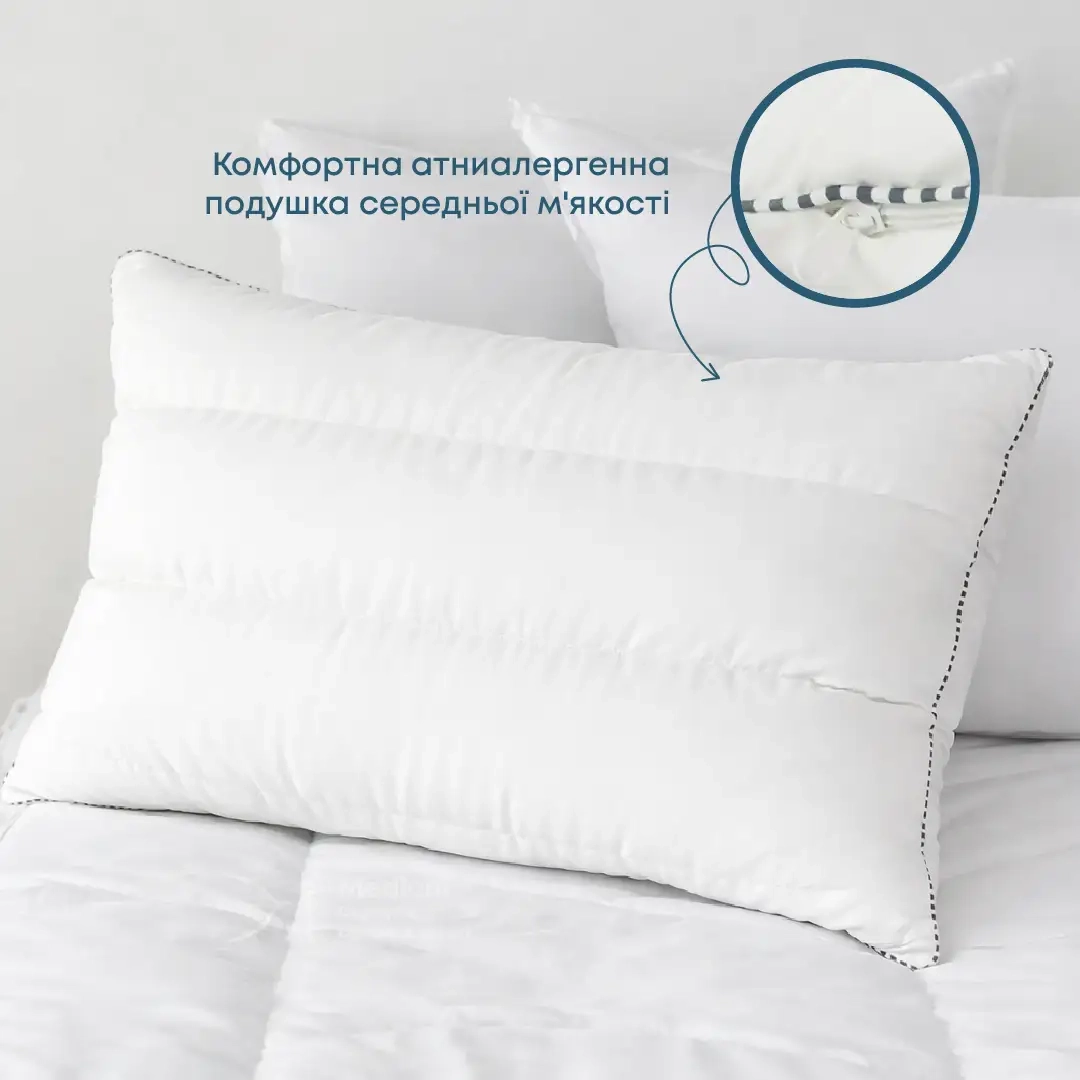 Комфортна атниалергенна подушка середньої м'якості.