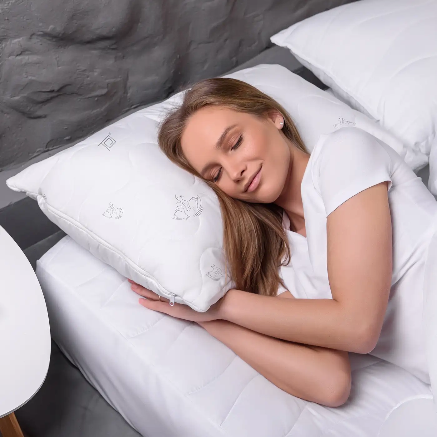 Вишукана антиалергенна стебнована подушка з волокном, ідентичним натуральному лебединому пуху.