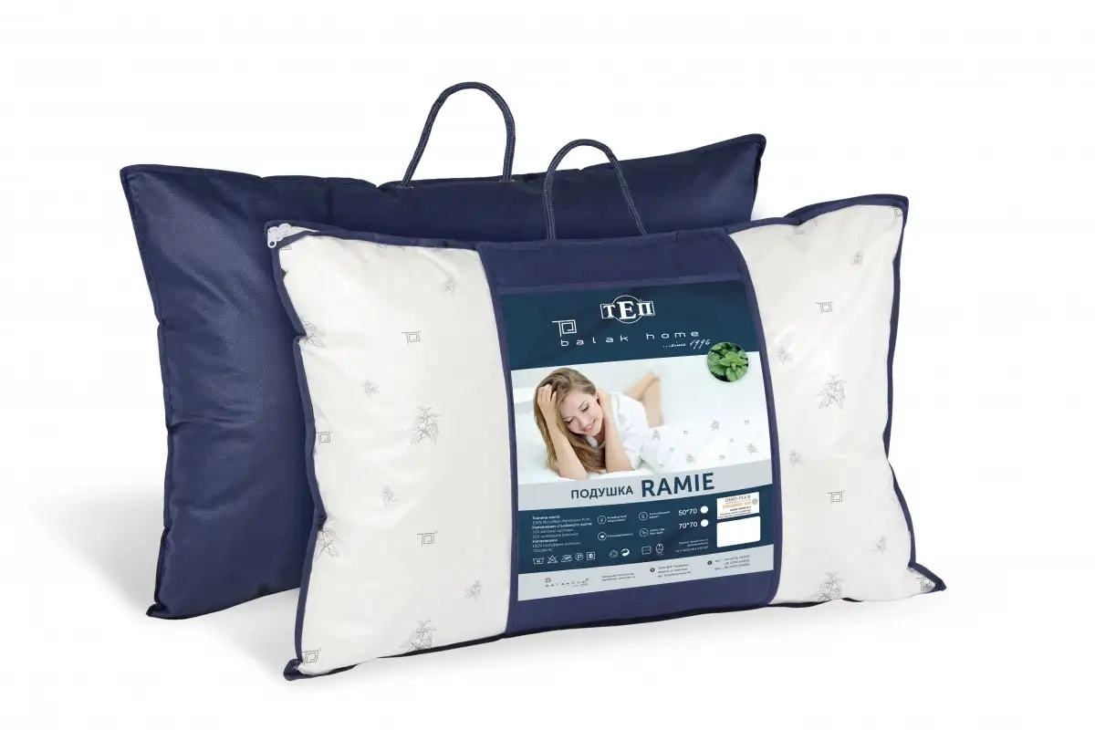 Натуральне волокно рамі пристебане до зйомного чохла, а всередині подушки – поліефірне силіконізоване волокно Double Air, антиалергійне, пружне, відмінно відновлює форму.
