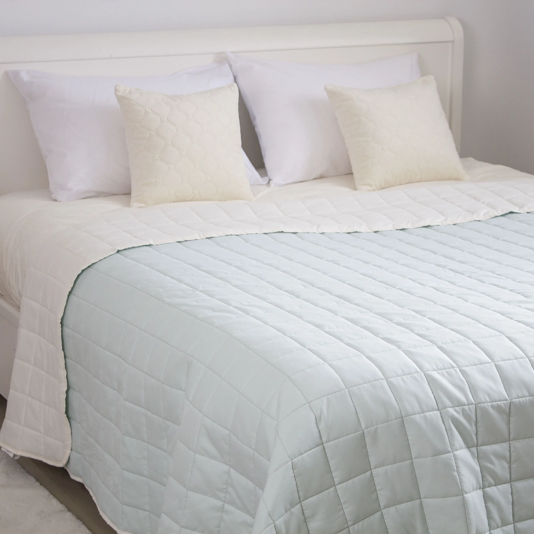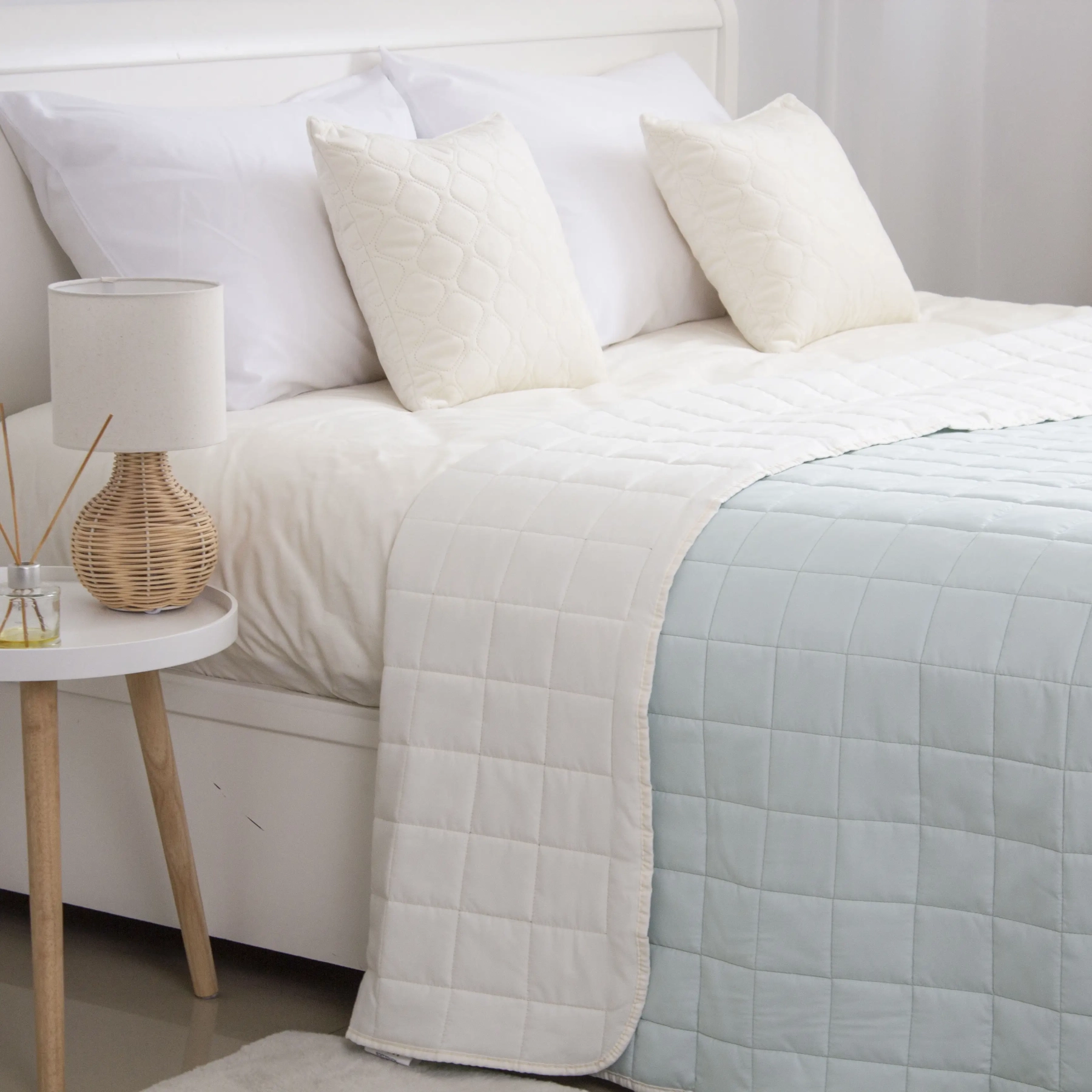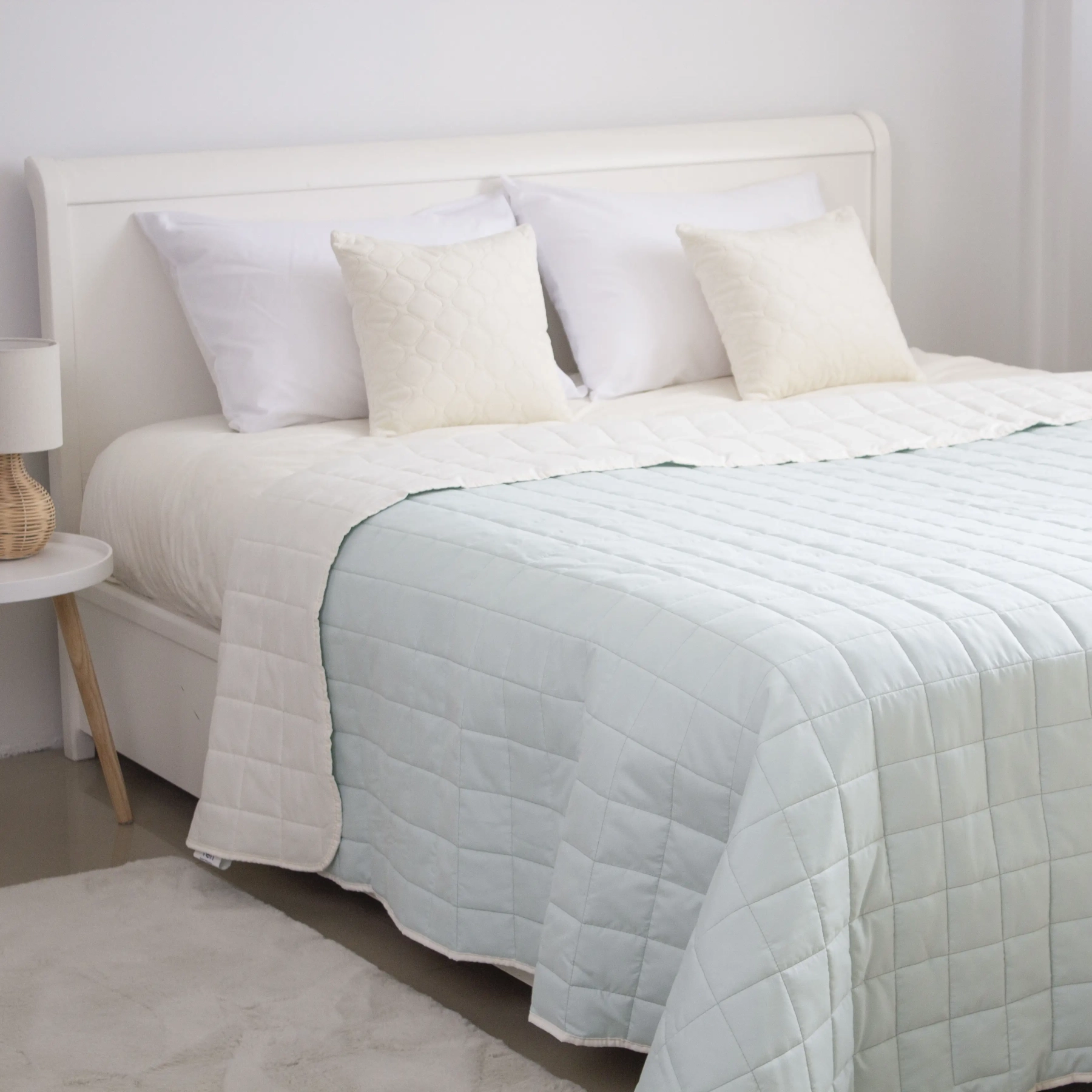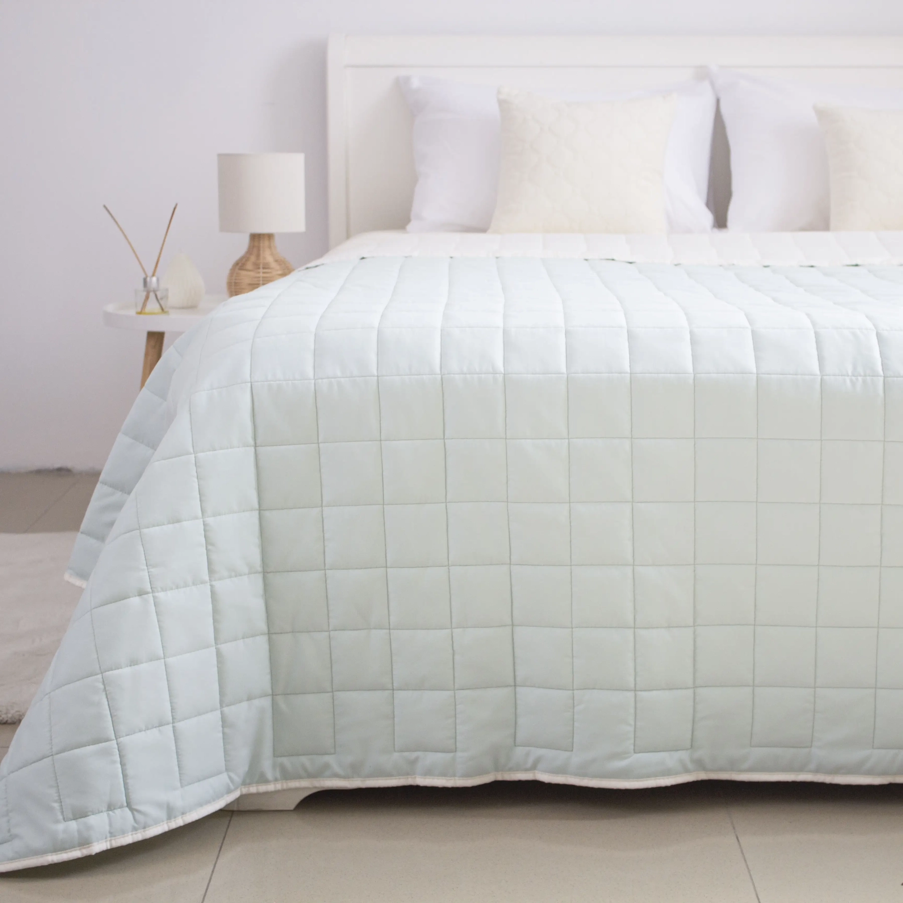 Матеріал та догляд:Зовнішня тканина: мікрофібра Наповнювач: 100% поліефірне силіконізоване волокно Щільність наповнювача: 1 50 г/м² Покривало просте у догляді: можна прати у пральній машині, швидко сохне та зберігає свої первинні властивості.