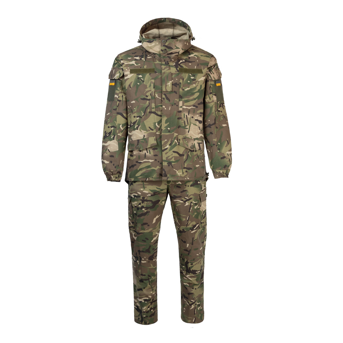 Комплект включає куртку та штани:- Куртка: Подвійна блискавка, планка на ґудзиках, велкро-панелі для шевронів, регульований капюшон і талія, 6 кишень (нагрудні на блискавках, нижні з клапанами).