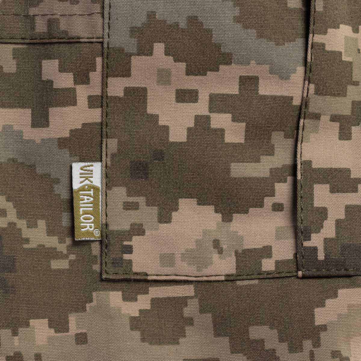 Польовий костюм Горка ММ-14 від українського бренду Vik-Tailor — це функціональний комплект тактичної форми для військових, правоохоронців, а також любителів активного відпочинку (туристів, мисливців, рибалок, страйкболістів). Виконаний у камуфляжі ММ-14 (піксель), який забезпечує маскування в міських і природних умовах. Матеріал — 100% бавовна з водовідштовхувальним просоченням, щільністю 240 г/м², міцний, дихаючий, не шелестить. Посилені шви та подвійний шар тканини в зонах навантаження (коліна, сідниці).