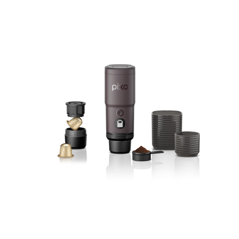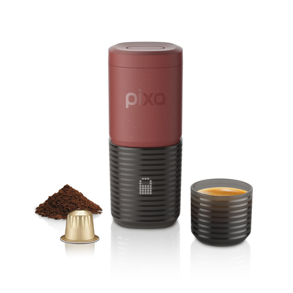 Опис портативної електричної еспресо-кавоварки Wacaco Pixapresso для меленої кави та капсул, червоної:Wacaco Pixapresso — перша електрична еспресо-кавоварка від Wacaco. З її допомогою ви можете готувати улюблений гарячий напій, де б не знаходилися: вдома, на роботі, на пікніку або подорожі. Все, що вам потрібно, — улюблена кава, вода та не більше 5 хвилин часу!Pixapresso відкриває нові можливості для поціновувачів кави: пристрій готує напої на професійному рівні одним натисканням та розкриває весь букет смаків та ароматів, властивий зерну — від яскравої кислотності до шоколадної глибини.Вам доступні 4 види напоїв на вибір: еспресо, подвійний еспресо, лунго та ристрето. У наборі є 2 чашки з об'ємом 80 та 280 мл.4 види напоїв на вибірРезервуар для води розрахований на 120 мл. Для приготування можна використовувати мелену каву, яка засипається у кошик з регульованим об'ємом (8–16 г). Також підтримуються капсули NS.120 млмелену кавукапсули NSОсобливості Wacaco Pixapresso: