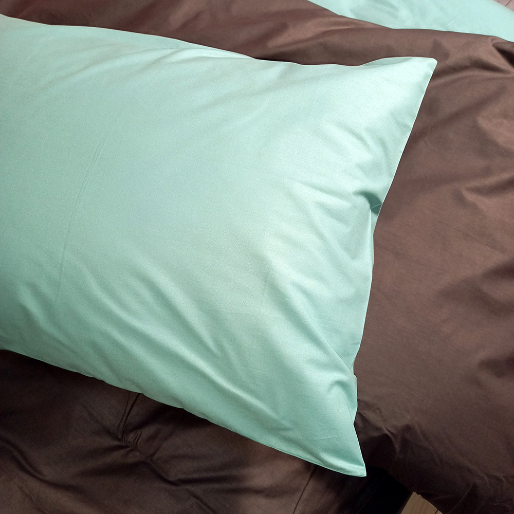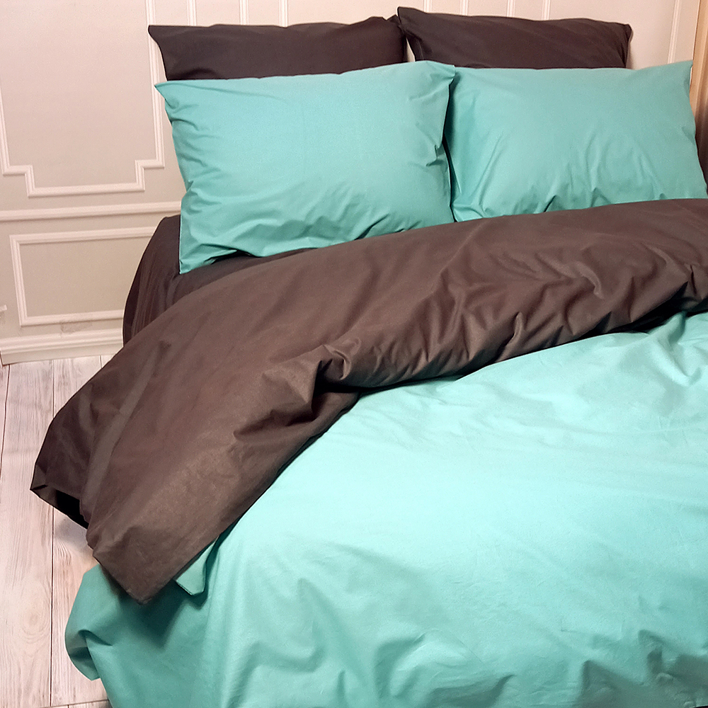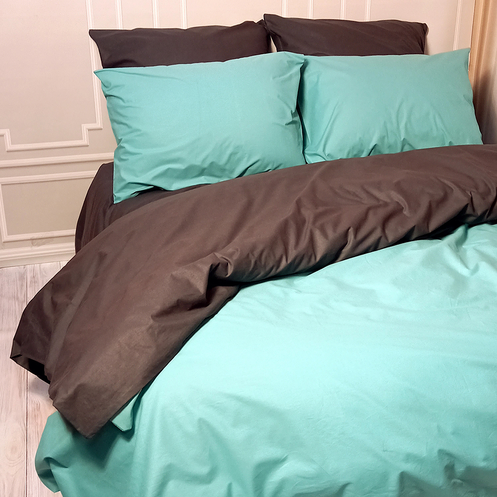 Однотонна двокольорова постільна білизна серії ДУЕТ від українського виробника зшито з 100% бавовняної тканини виробництва Туреччина, щільністю 140 г/м2.